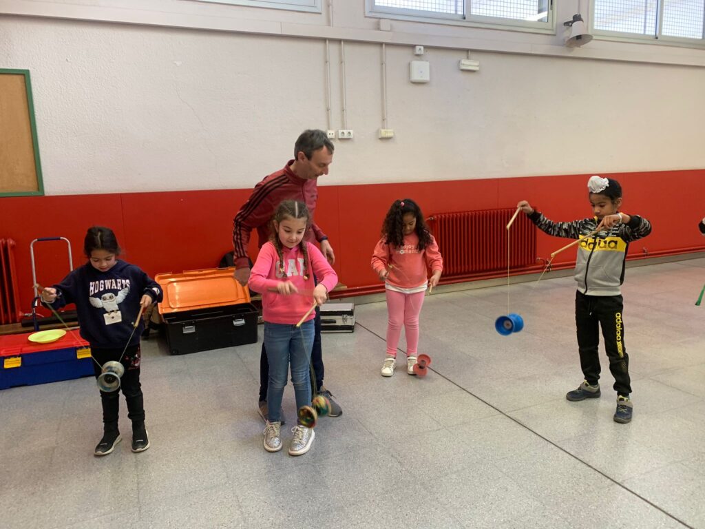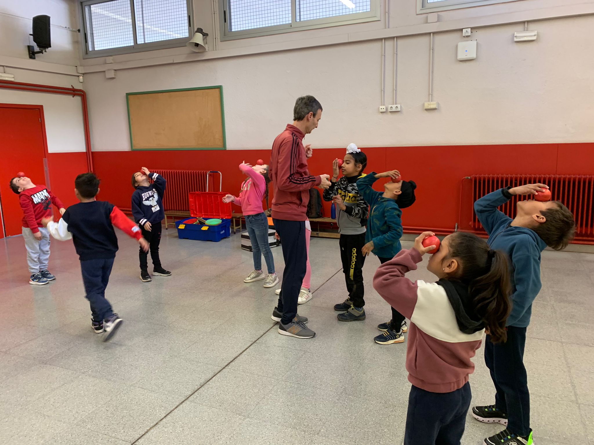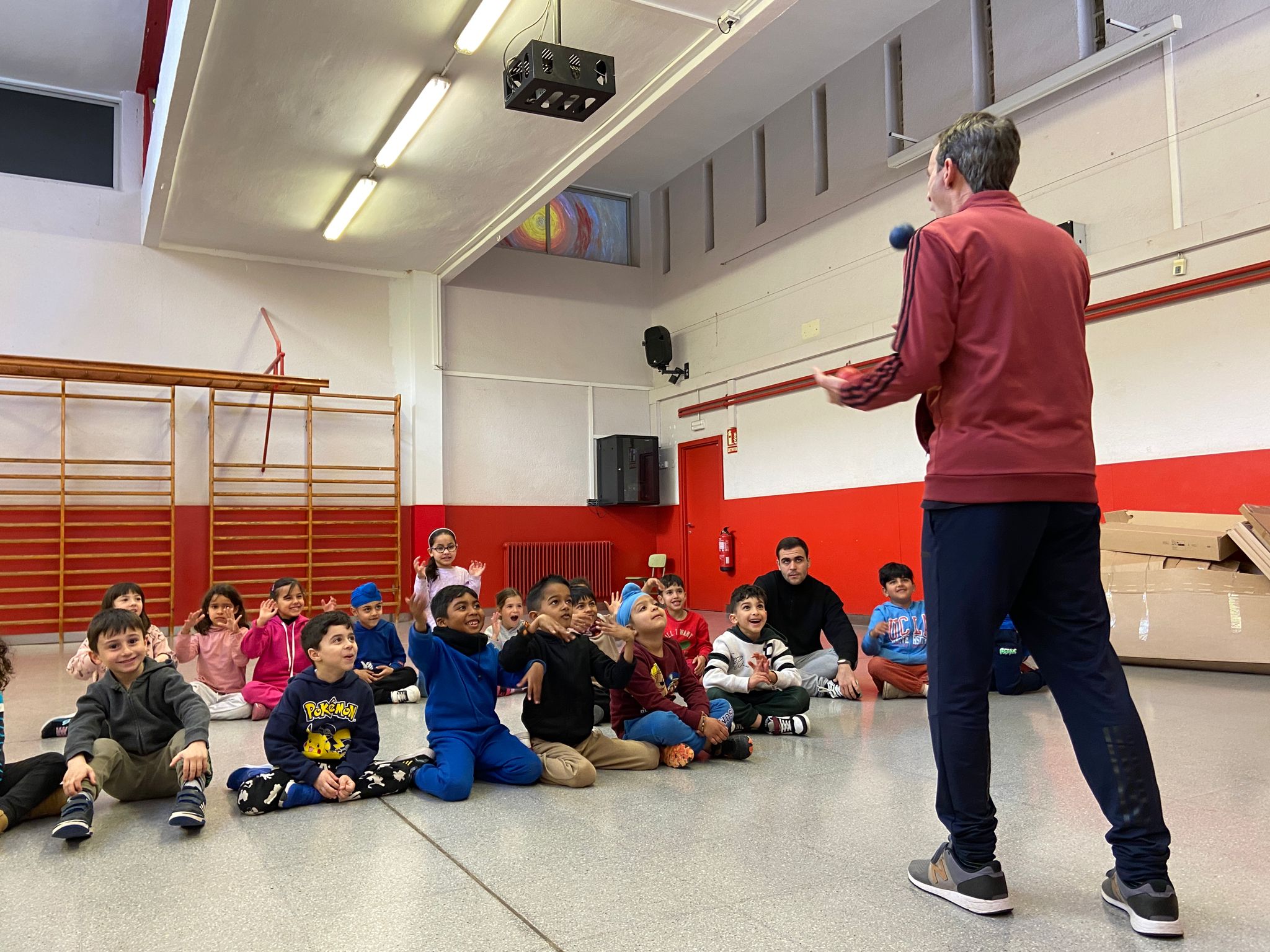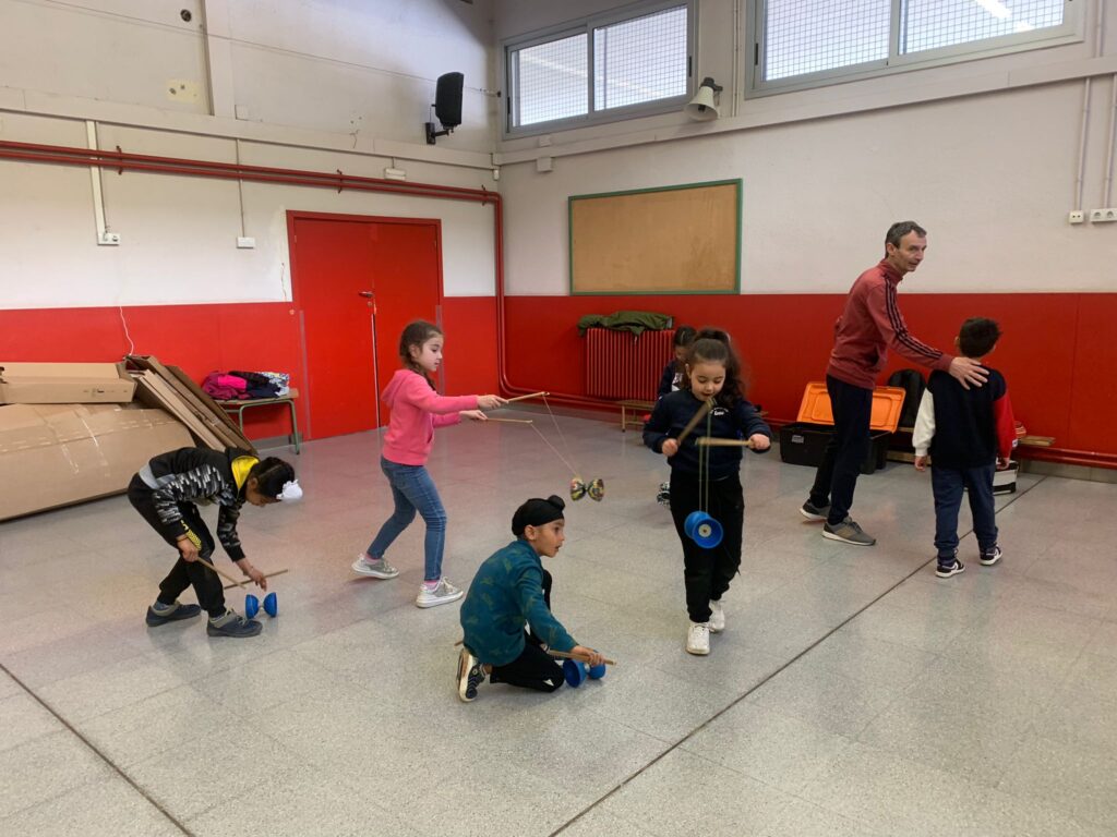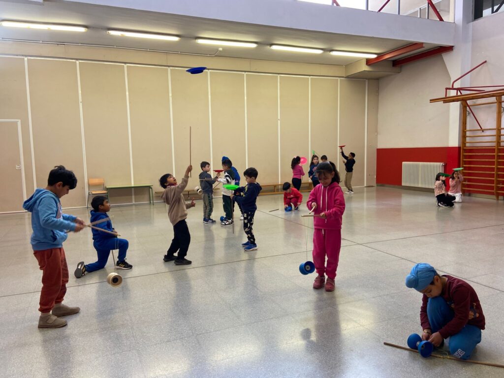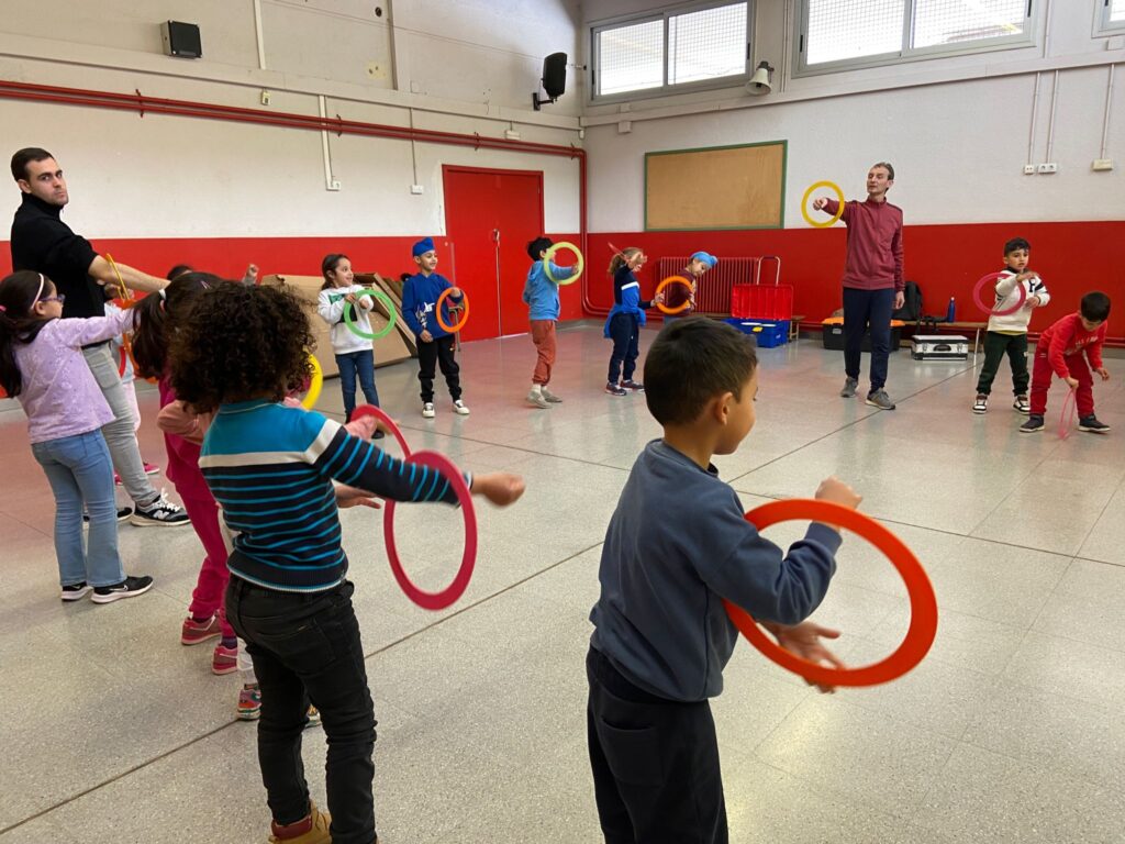 El Rafa ens ha fet una petita mostra de jocs de malabars i després nosaltres hem experimentat amb anelles, maces, plats xinesos, diàbolos i pilotes.