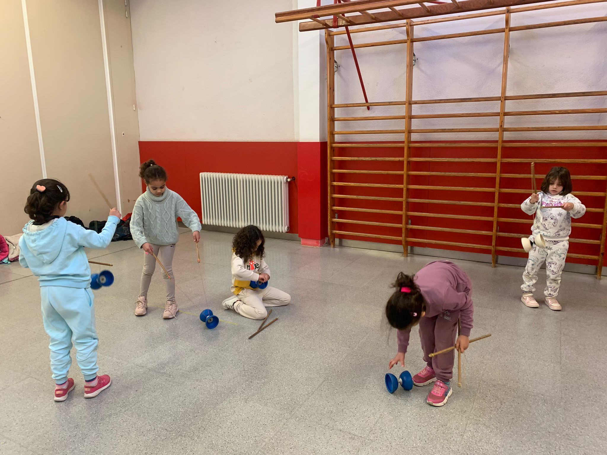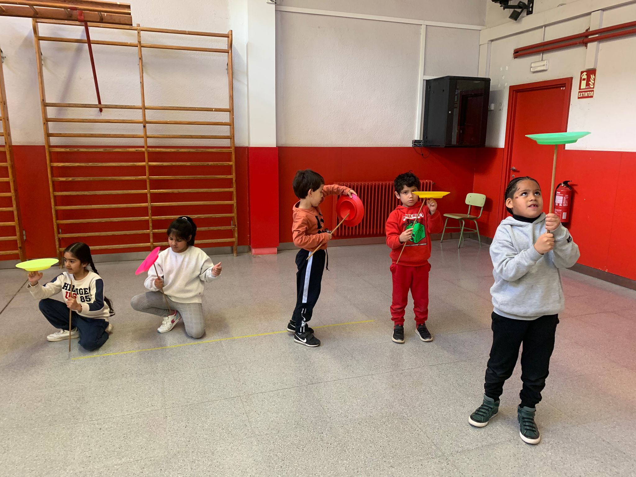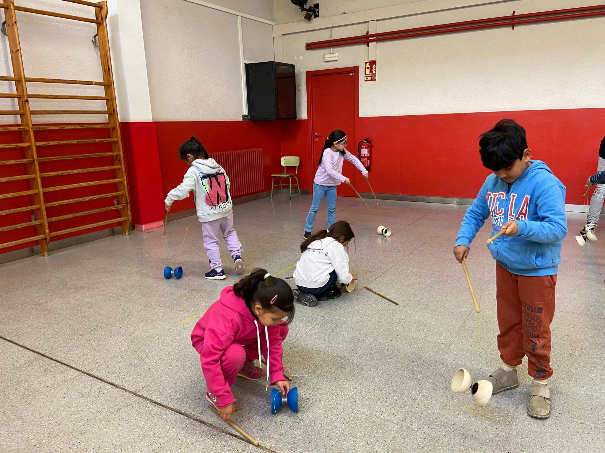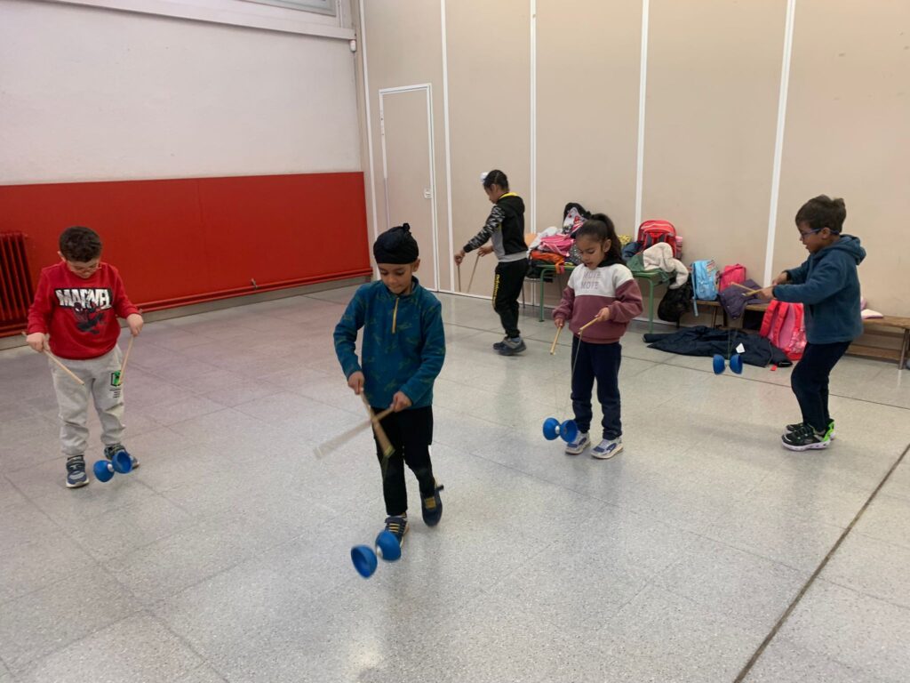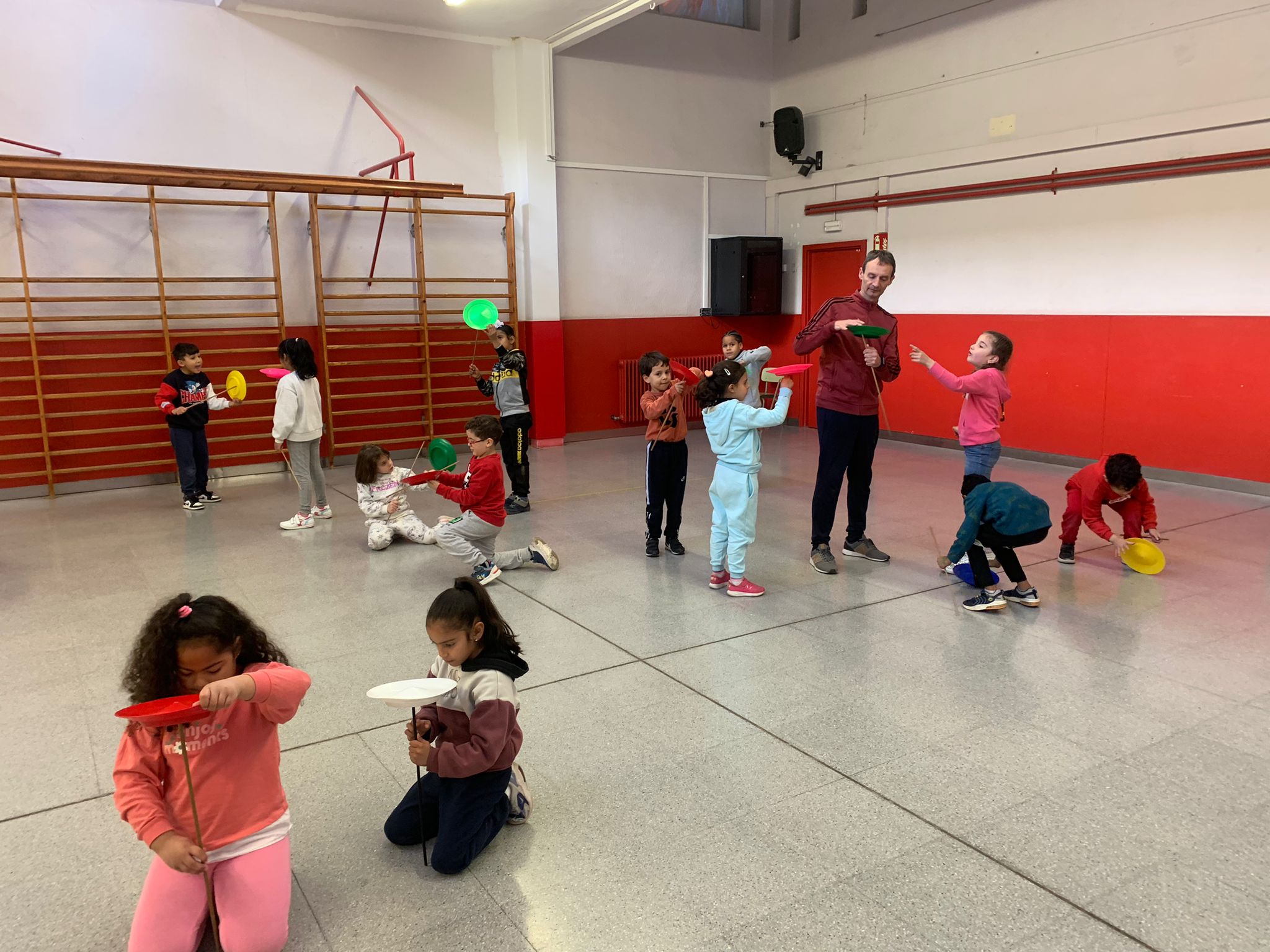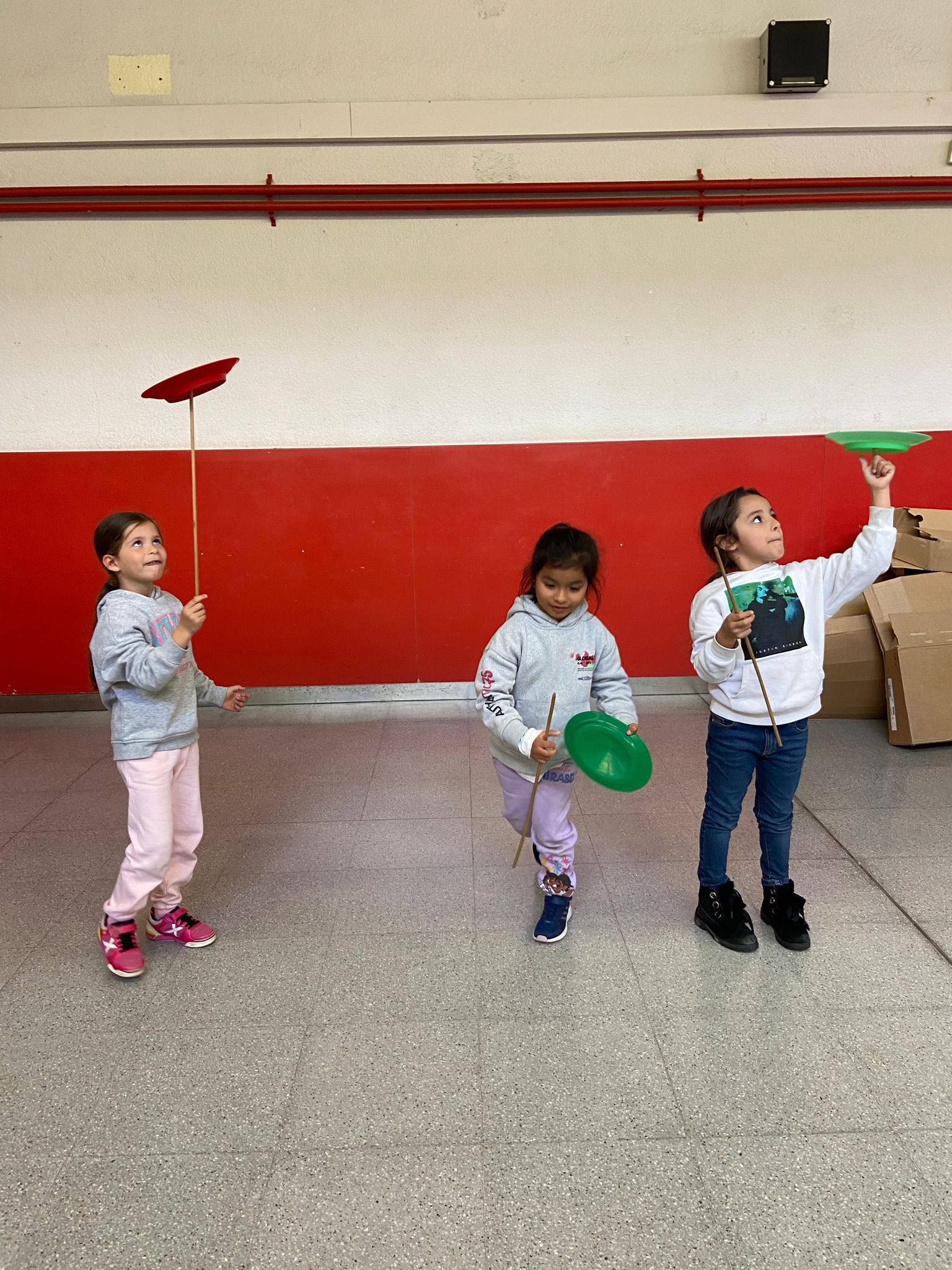 El Rafa ens ha fet una petita mostra de jocs de malabars i després nosaltres hem experimentat amb anelles, maces, plats xinesos, diàbolos i pilotes.