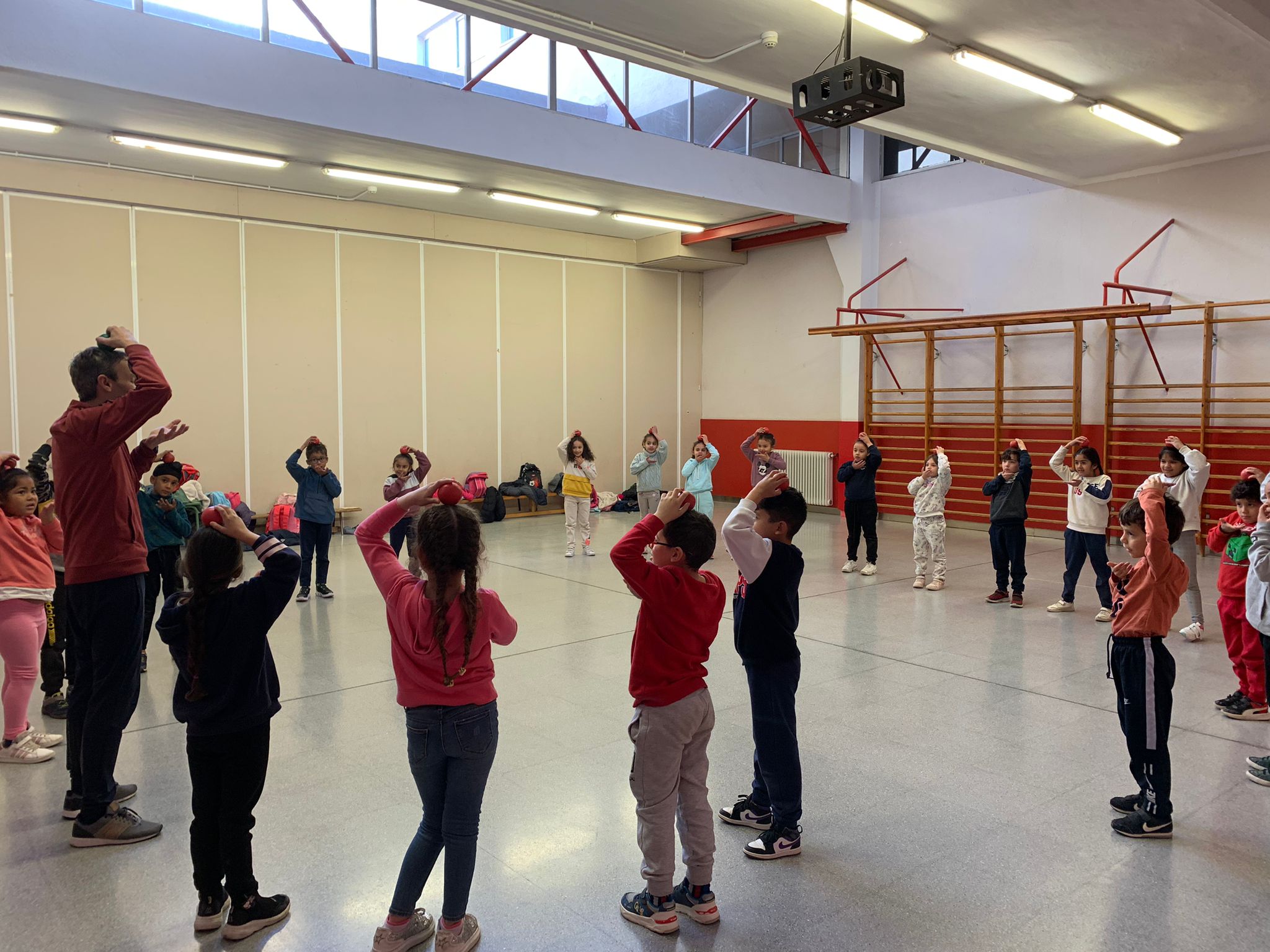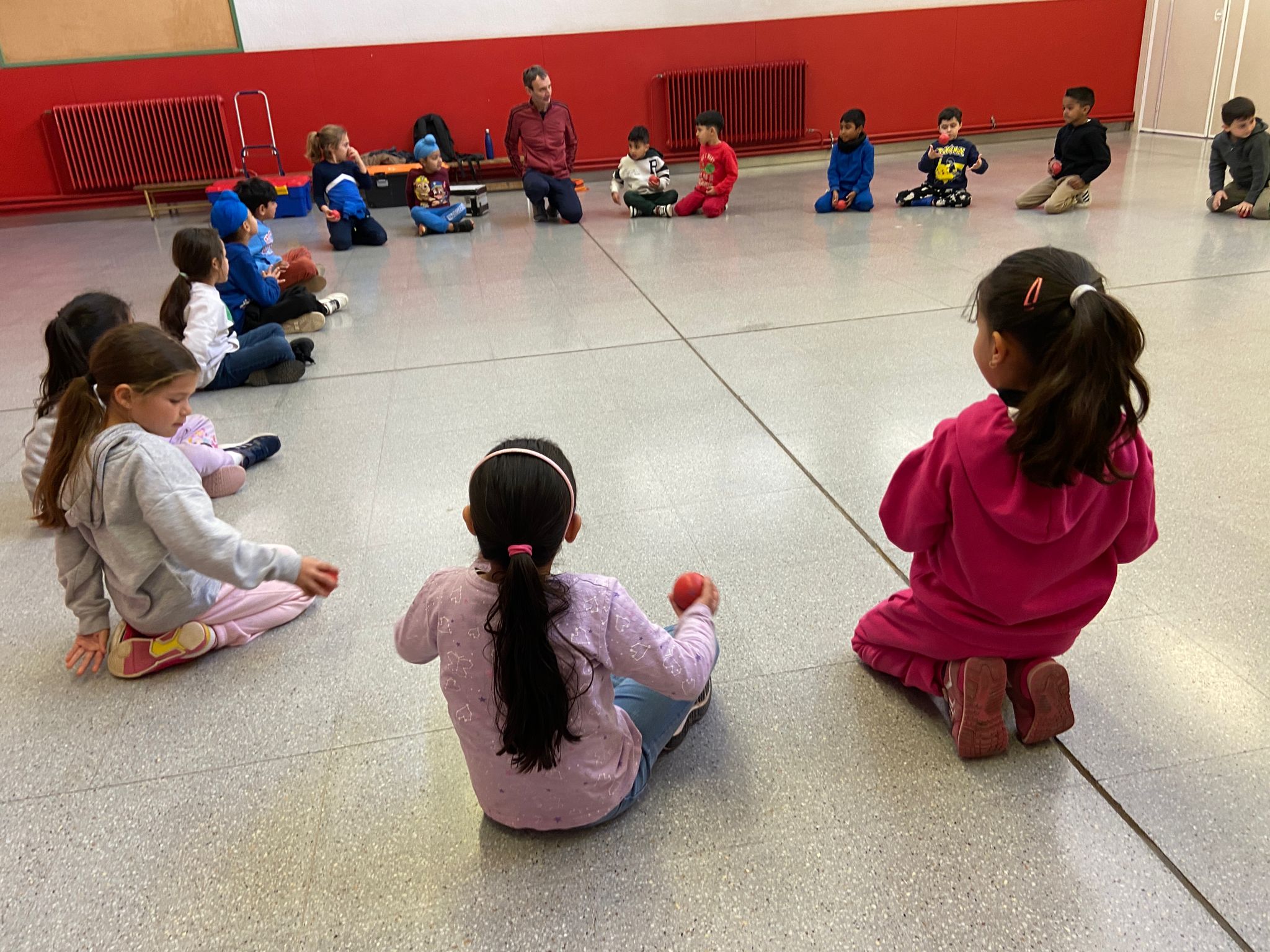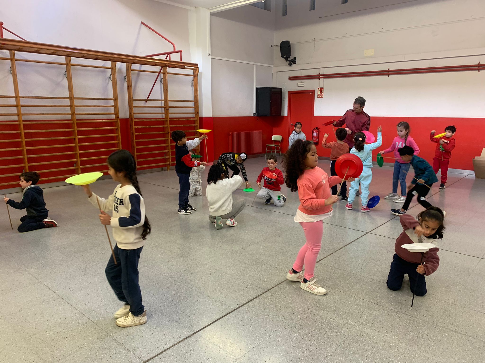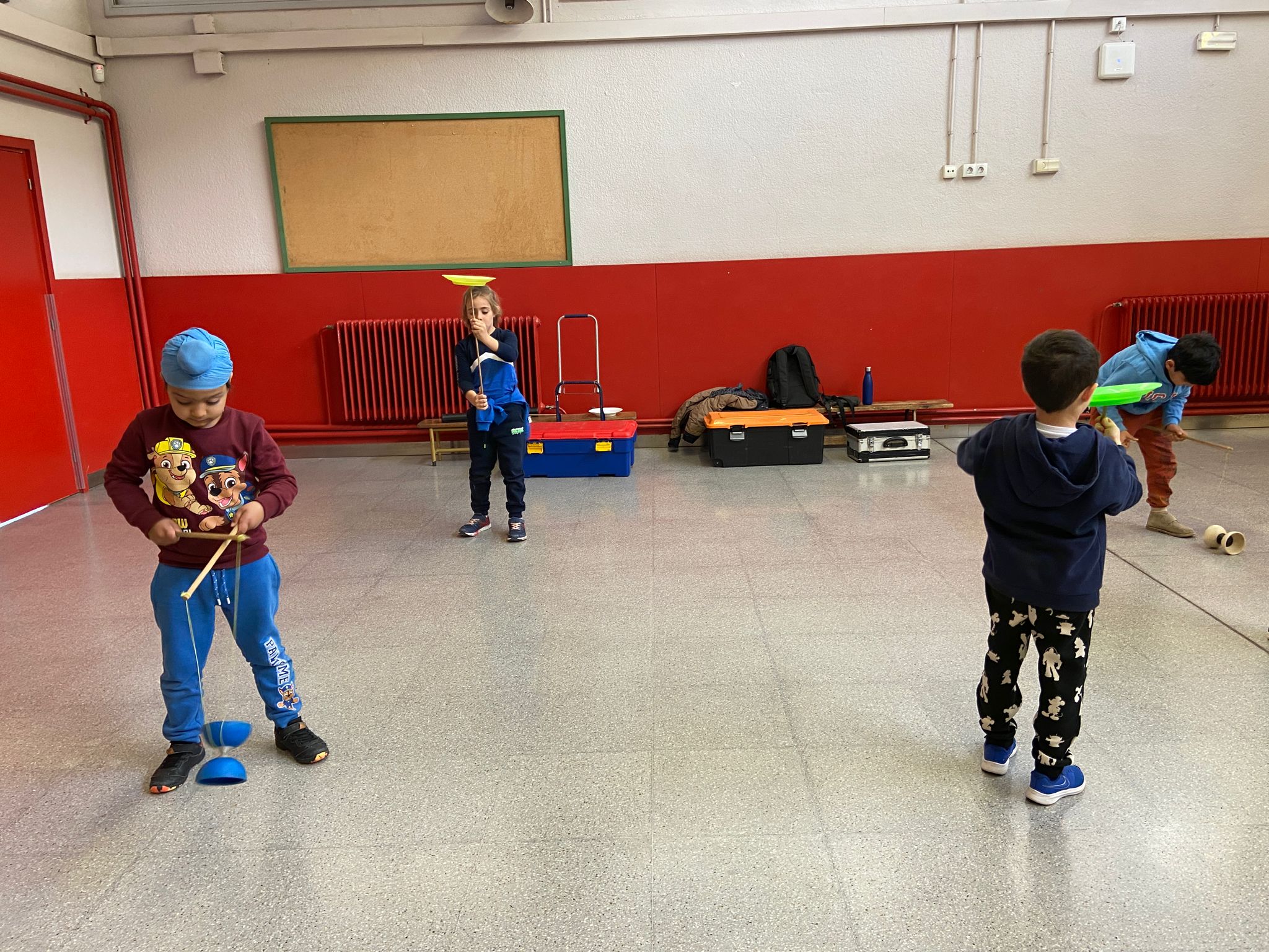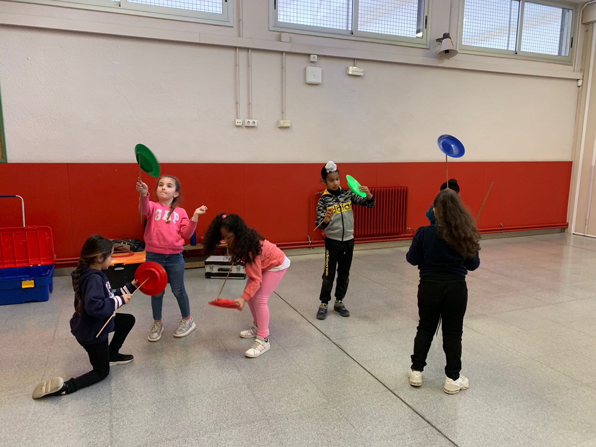 El Rafa ens ha fet una petita mostra de jocs de malabars i després nosaltres hem experimentat amb anelles, maces, plats xinesos, diàbolos i pilotes.
