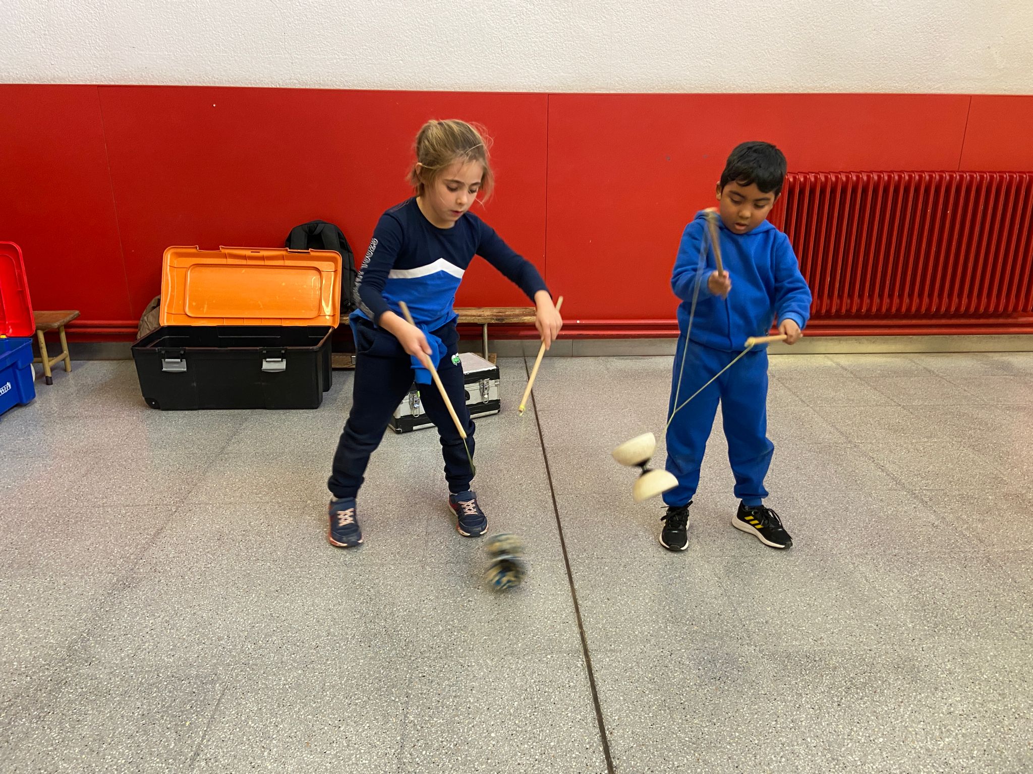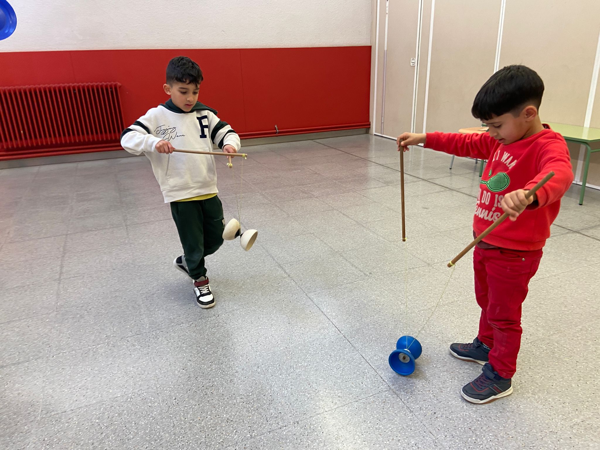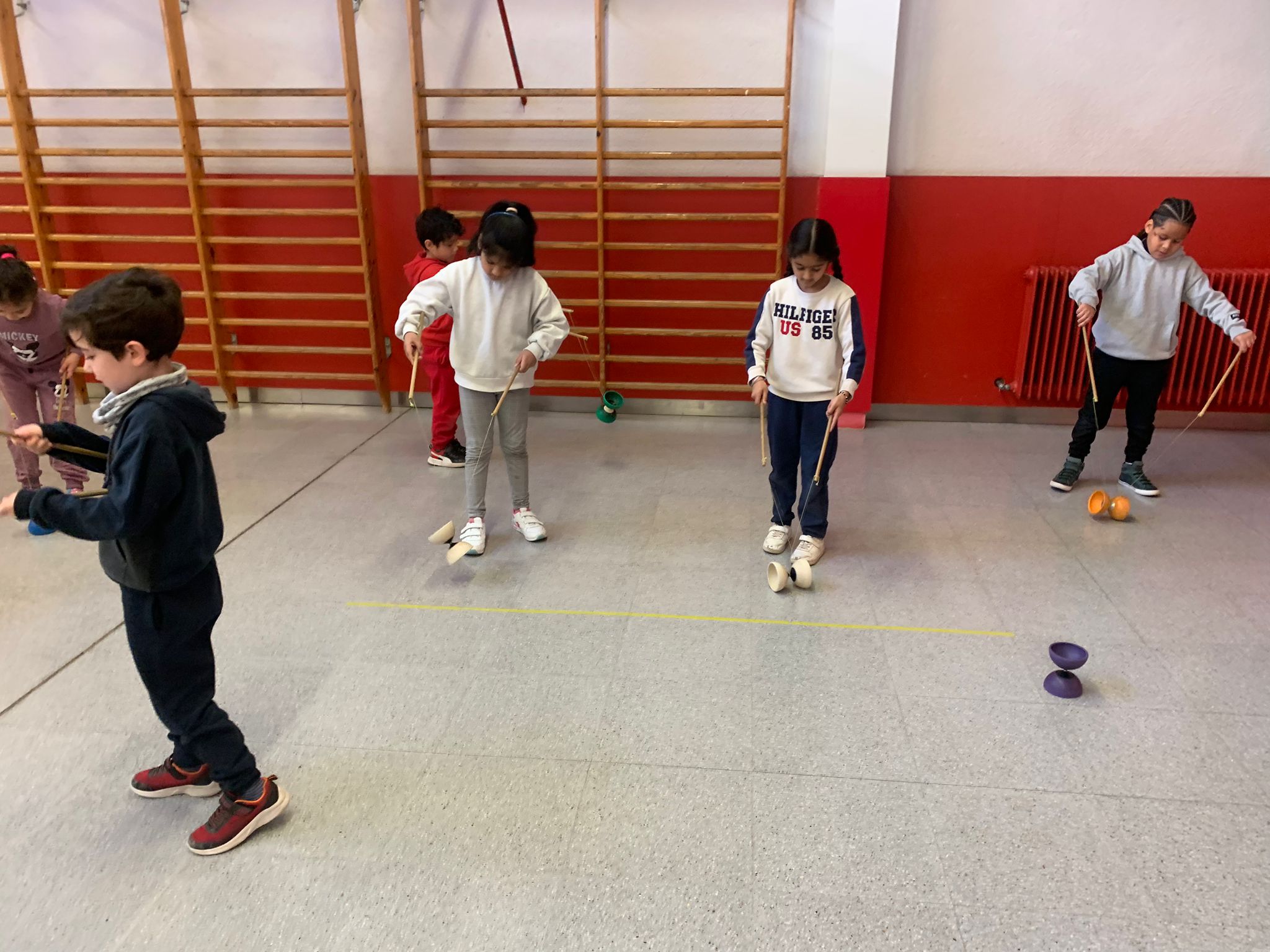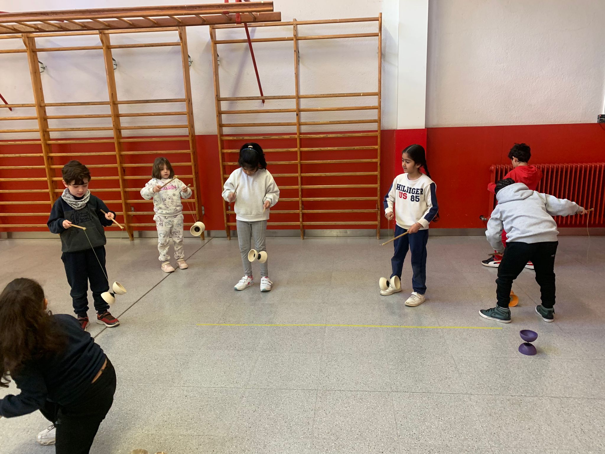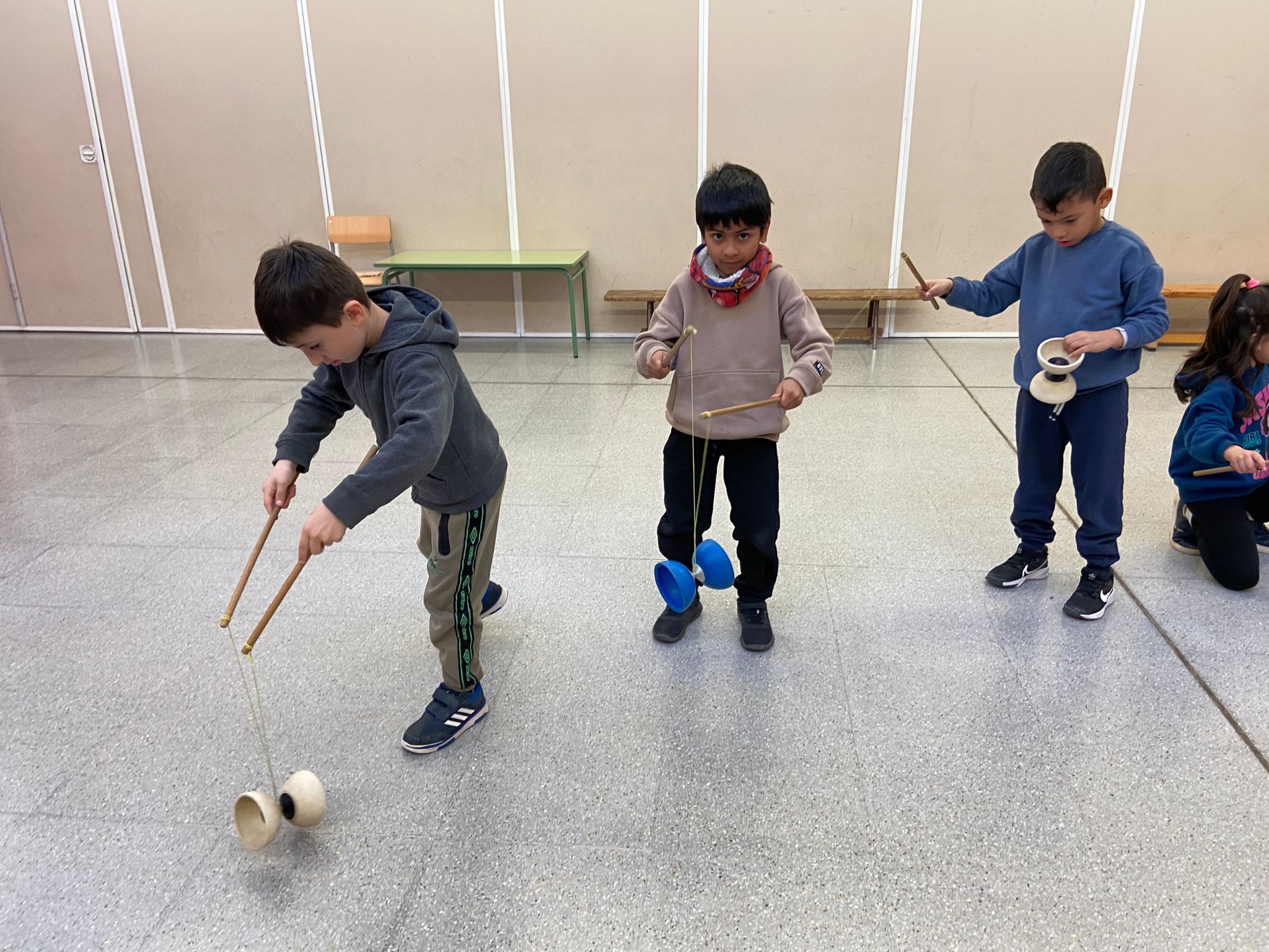 El Rafa ens ha fet una petita mostra de jocs de malabars i després nosaltres hem experimentat amb anelles, maces, plats xinesos, diàbolos i pilotes.
