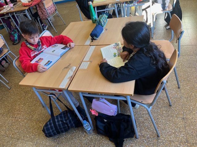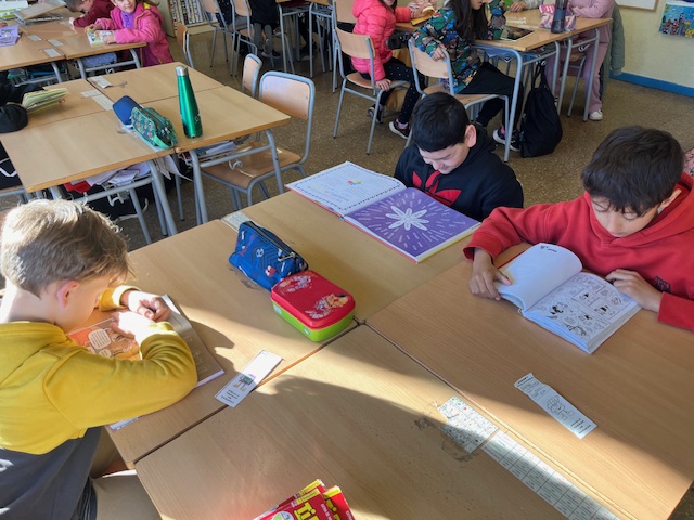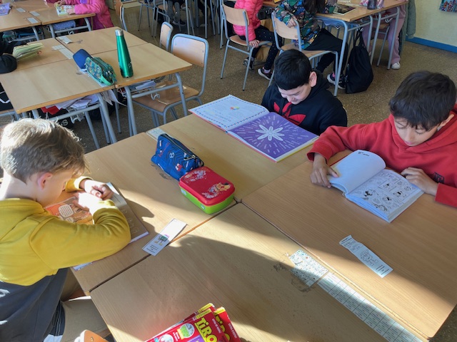 Diàriament fem 30’ de lectura i, avui toca lectura individual. Les/els alumnes agafen els llibres que estan llegint de la biblioteca d’aula i gaudeixen durant aquesta estona de tot allò que els hi proporcionen els llibre.