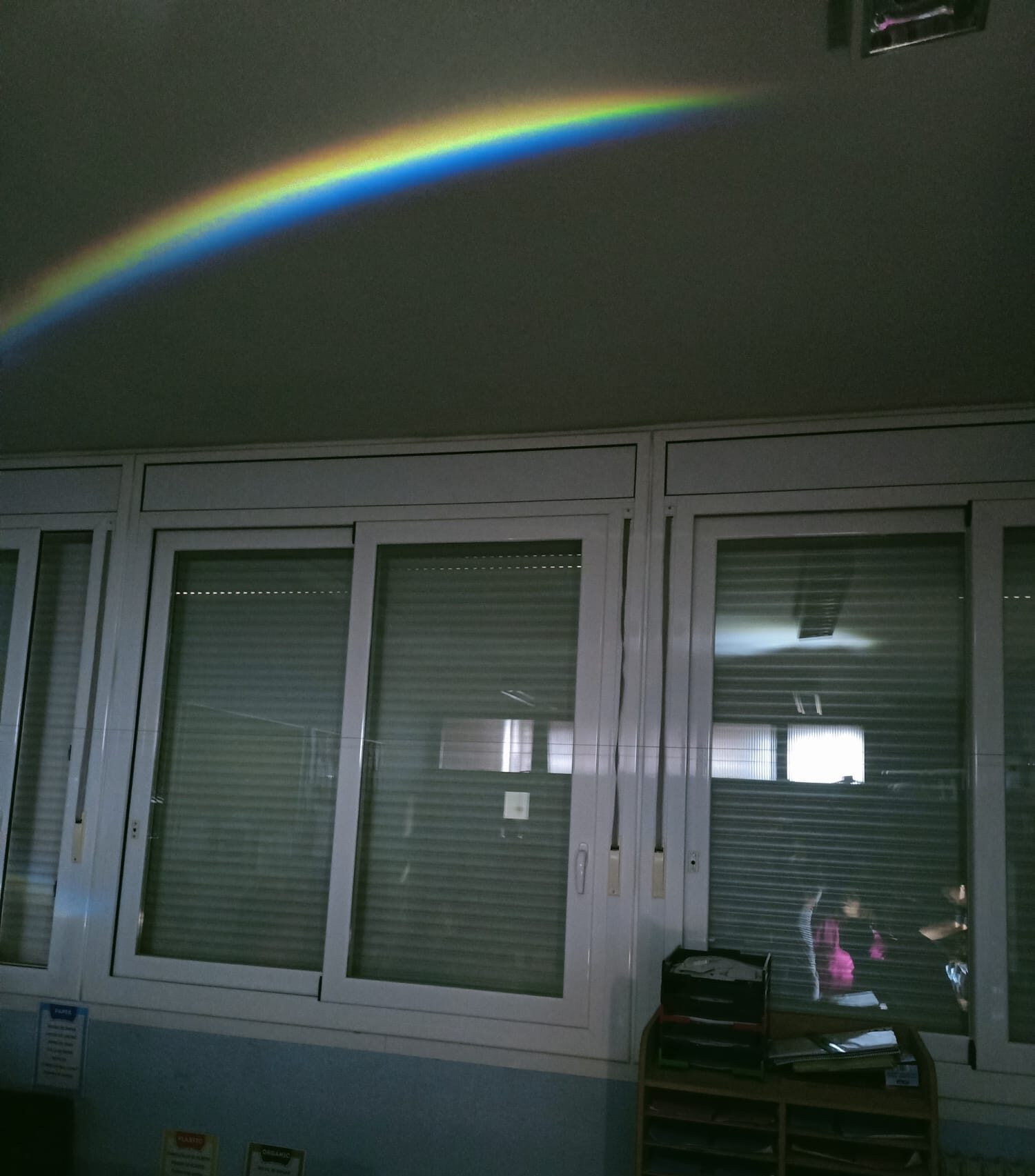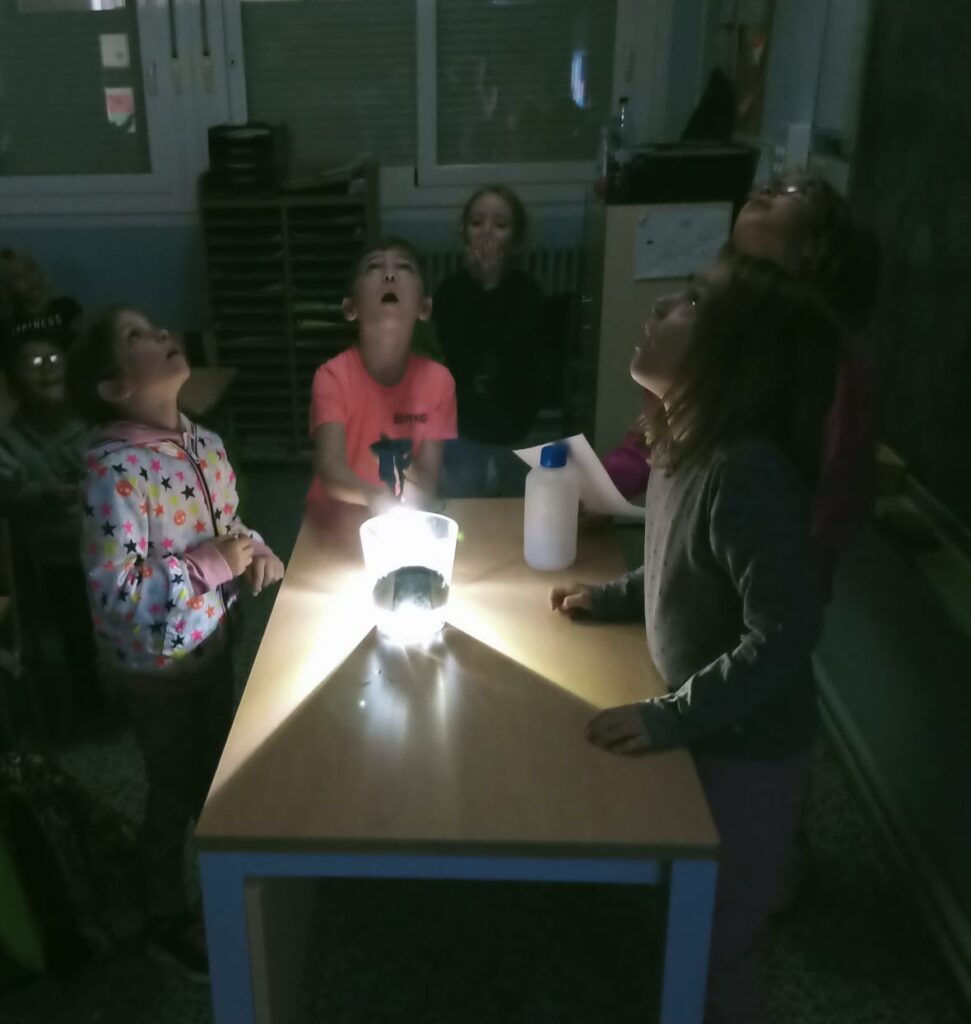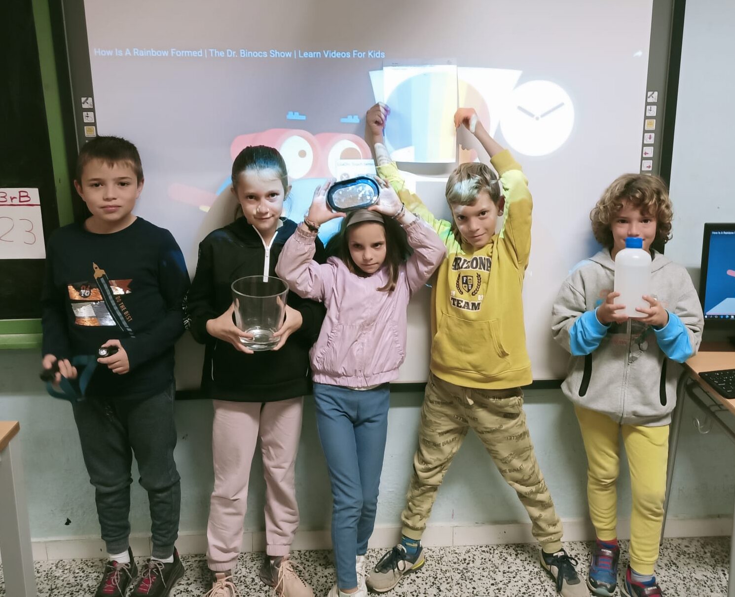 A Science Project estem fent experiments relacionats amb el temps meteorològic i aquesta setmana ens hem proposat el repte de fer un arc de sant matrtí (a rainbow) dins la nostra classe. Han sorgit idees molt creatives i divertides, però finalment tenint en compte els únics materials que podíem fer servir (a torch🔦, a mirror🕳, some water💦, a vase⬜ and a paper📃) hem fet l’arc de sant martí tal i com podeu veure a les fotografies.