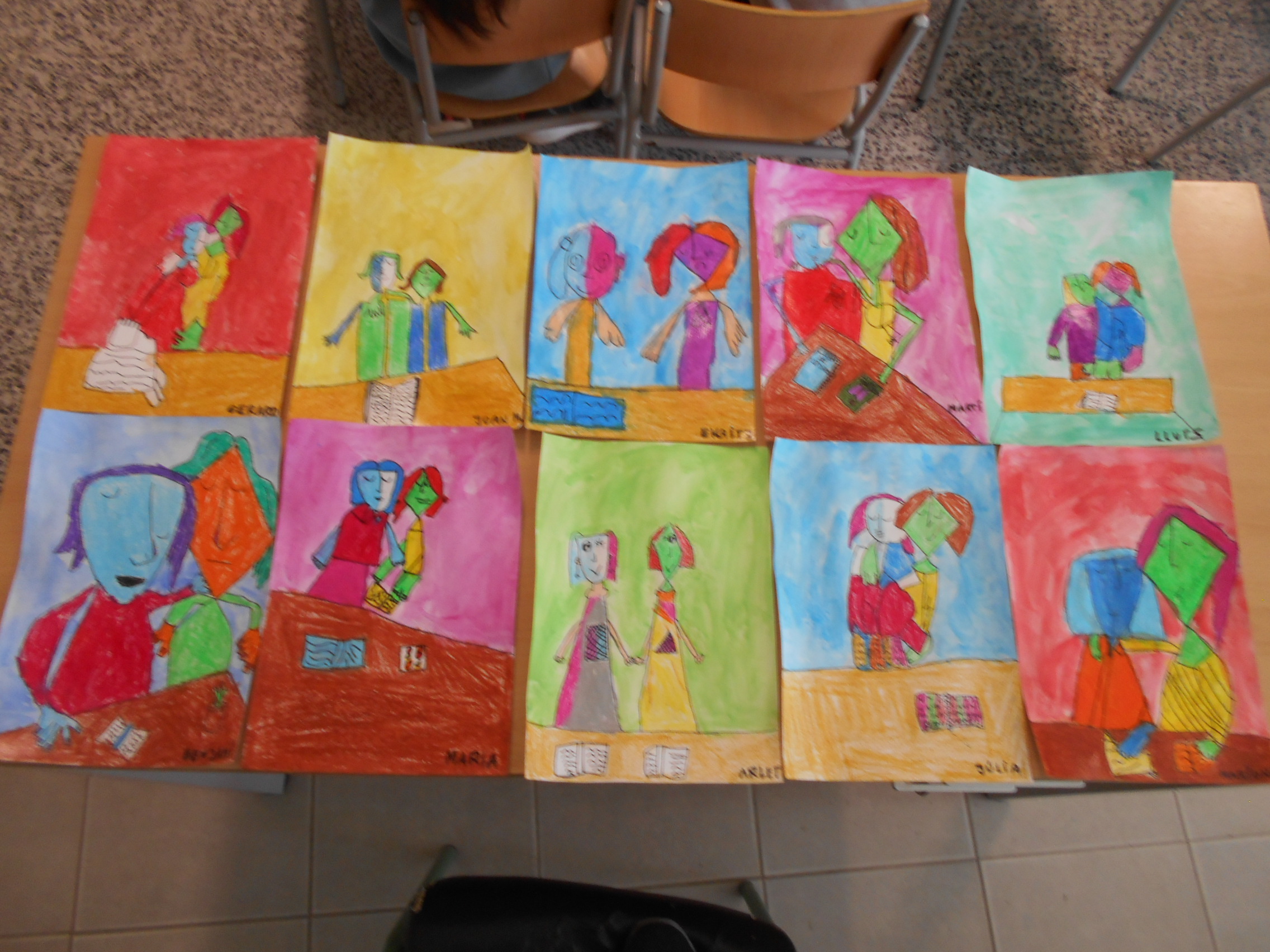 Seguint el model de PICASSO, hem dibuixat “DUES NENES LLEGINT”. A una li hem fet la cara en forma de semicercle i a l’altra de rombe.