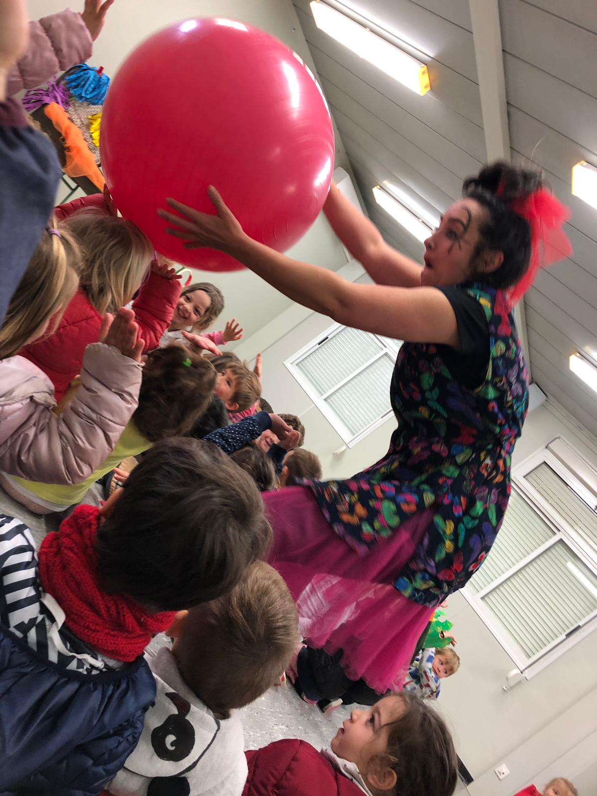 Els/les alumnes de P4 i P5 han gaudit de l’espectacle amb la Pallassa Trafalgar. Ha fet moltes i moltes pallassades però també hem vist diversos personatges del circ que ens han agradat molt: hem vist malabars, hem jugat amb uns aros! Ens ha agradat moltíssim.