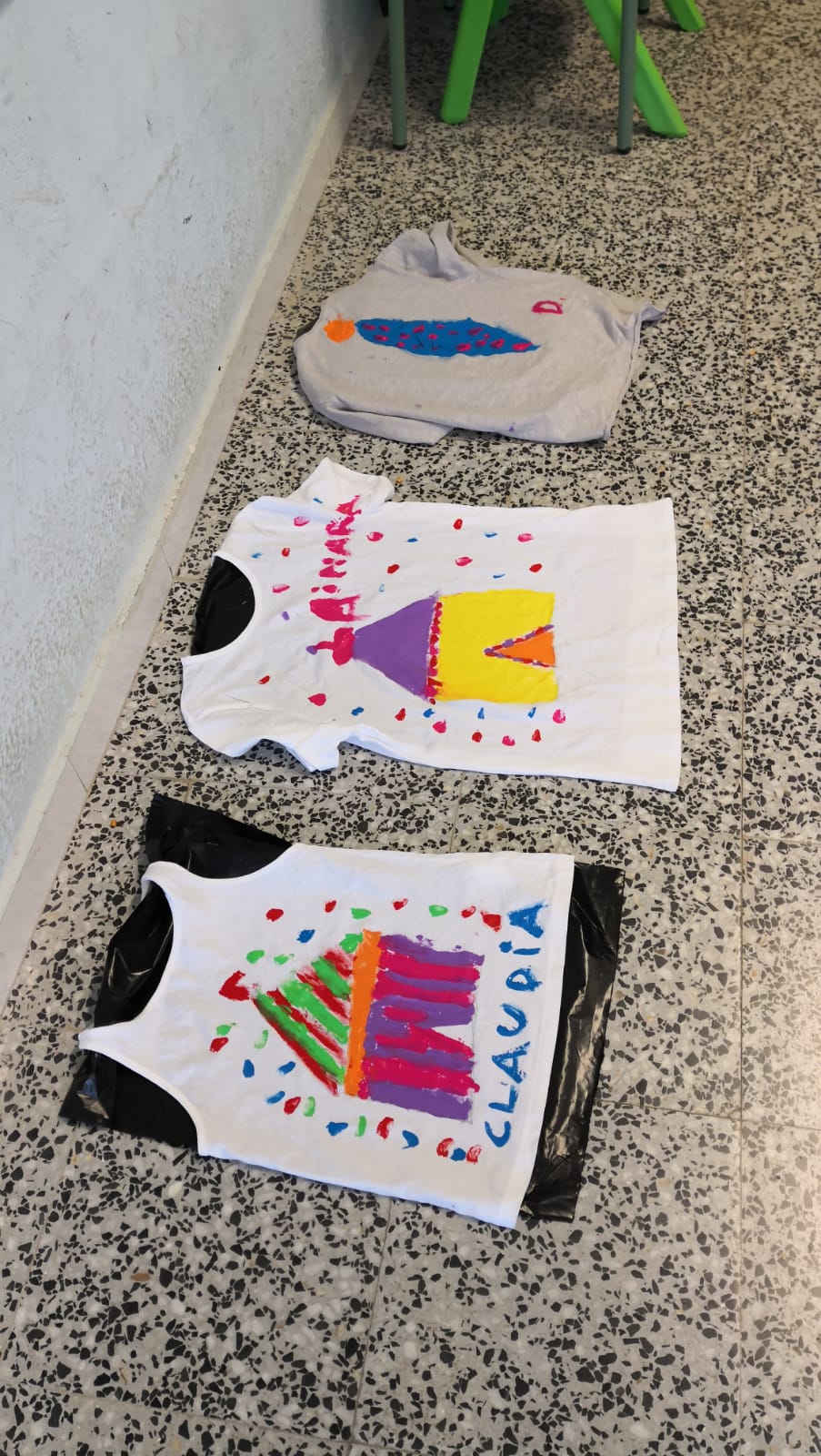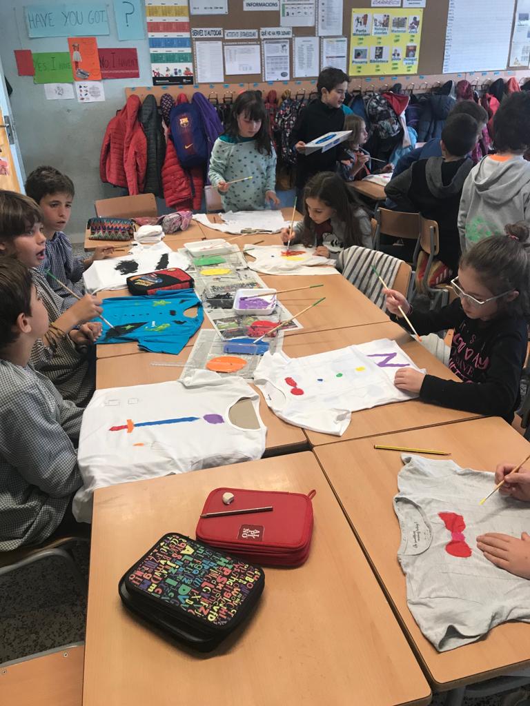Mireu quins artistes estem fets! Aquesta tarda hem preparat unes samarretes que hem anat decorant com hem volgut. Ens serviran per fer alguna actuació, de ben segur!.