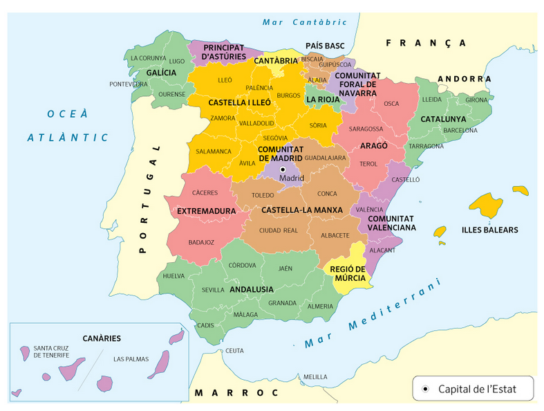 El proper trimestre a Science Project investigarem sobre les diferents comunitats autònomes de l’estat espanyol. Per iniciar el tema, us proposo aquesta activitat : https://docs.google.com/document/d/1oHquwFRmITWqF4f8-0WSON_phLiyMo0gdZhxvYcHnCM/edit?usp=sharing. Us en podeu fer una còpia (fitxer–> fes una còpia) o bé copiar el text en un altre document del vostre drive (google documents). Per resoldre l’activitat, podeu utilitzar el mapa que trobareu tant al document com en aquesta publicació.