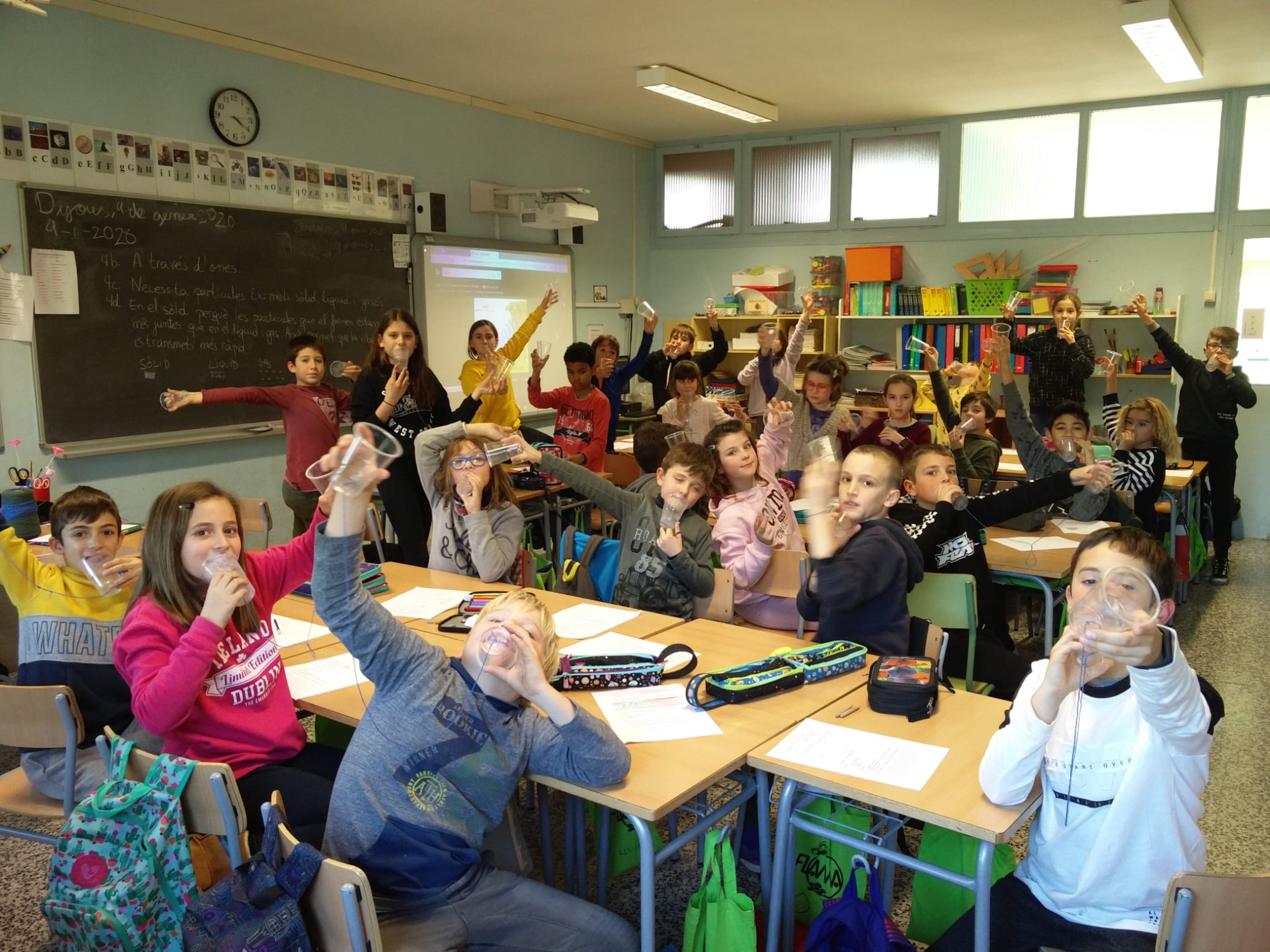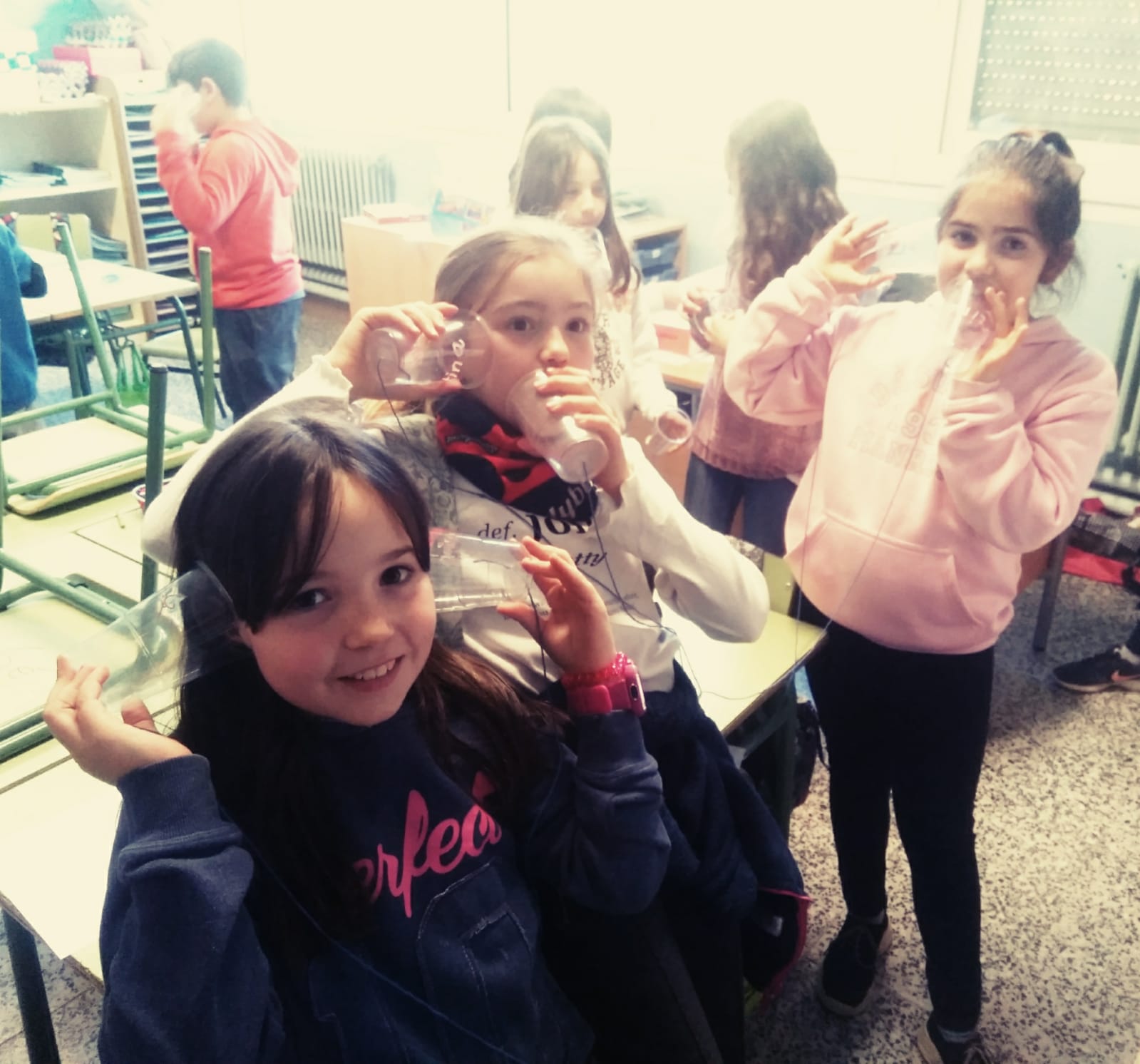 Per comprovar que el so es transmet mitjançant la vibració de partícules i que pot viatjar a través de diferents medis, hem fet un telèfon amb gots i fil.
