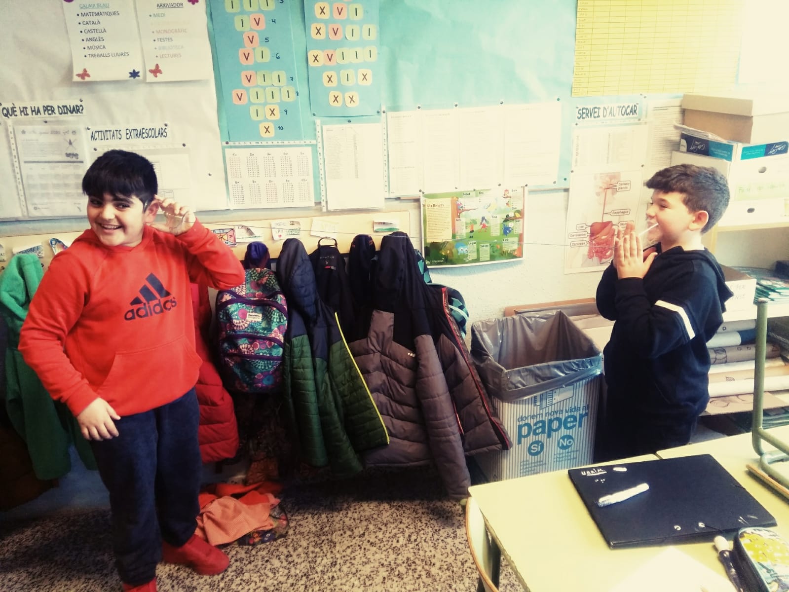 Cadascú de nosaltres tenia dos gots, un punxó i un tros de fil. Hem fet un forat al cul de cadascun dels gots, hem passat el fil pels dos gots i hem fet un nus a l’extrem perquè no s’escapés.A continuació hem provat si el telèfon funcionava.