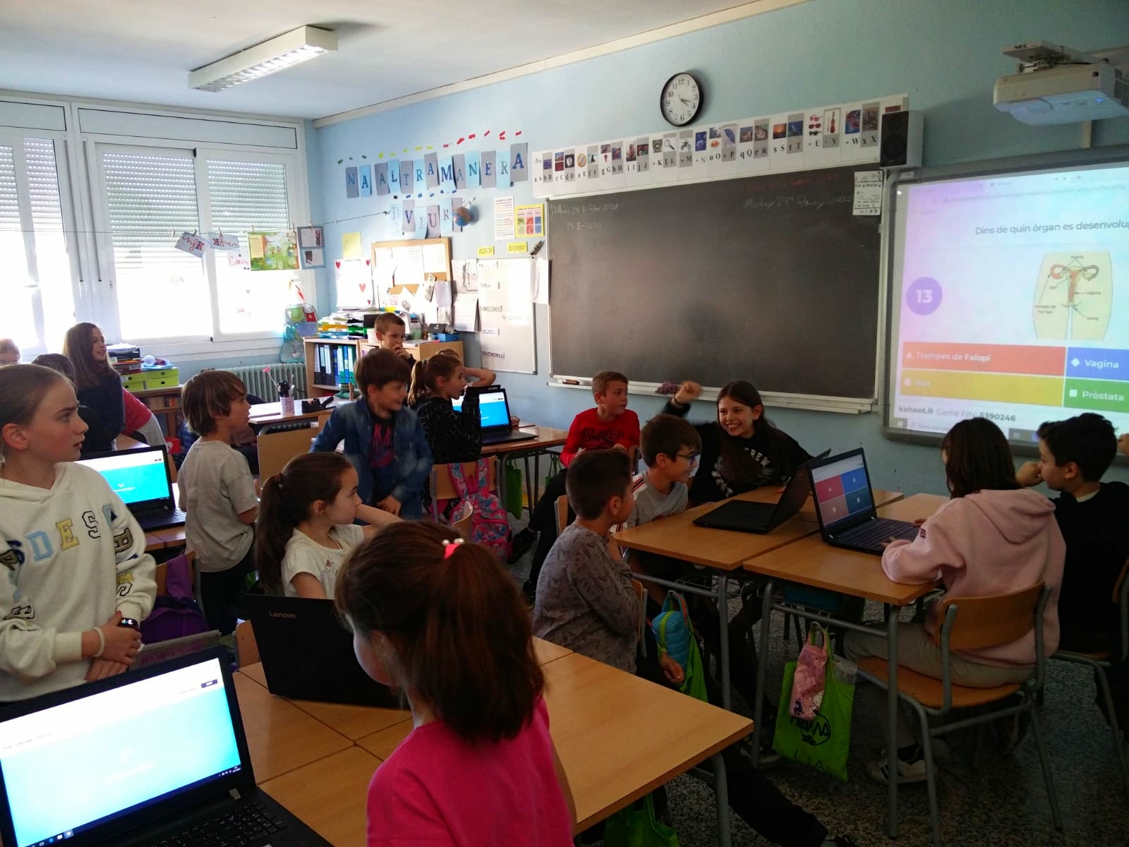 Avui hem dedicat una estona per jugar a un Kahoot! sobre el tema que hem estat treballant aquests dies: la reproducció dels éssers vius. Hem hagut de llegir bé les preguntes, les possibles respostes i a la vegada gestionar molt bé el temps de presa de decisió amb el nostre petit grup perquè anàvem a contrarellotge.