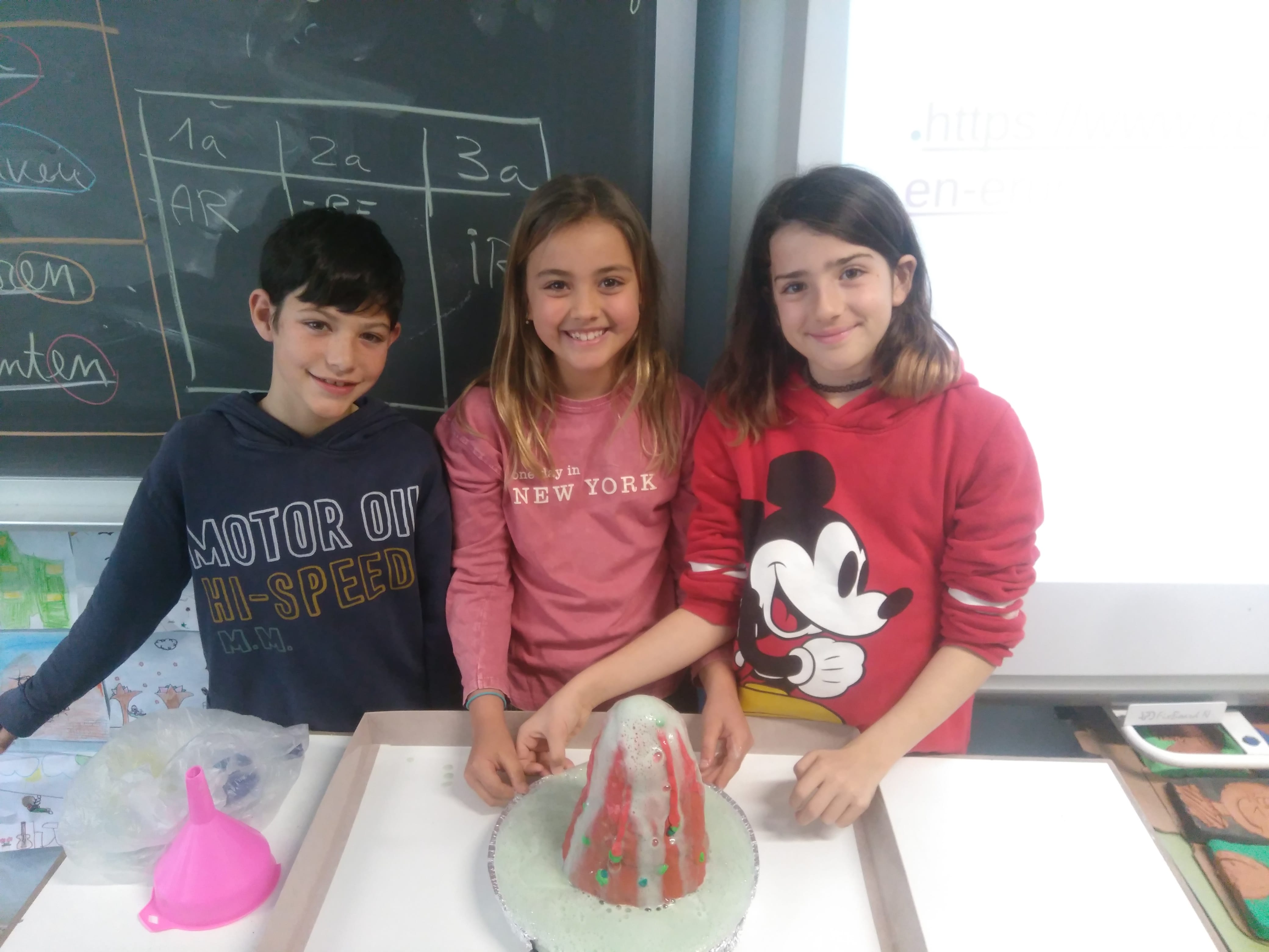 -Amb l’Anna C., el Carles i l’Aura hem recordat les colònies a la Vall de Bianya quan ens han parlat de l’activitat dels volcans i ens han preparat un magnífica maqueta d’un volcà en erupció.