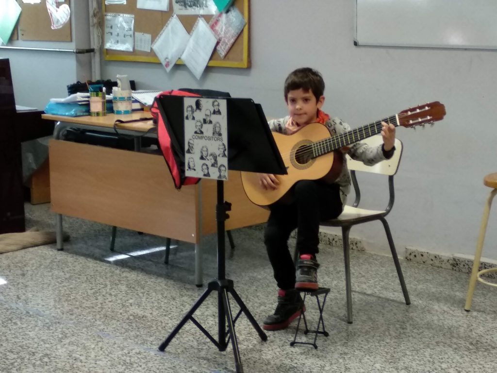 Aquest matí s’ha fet un gran silenci quan hem sentit les notes delicades que han sonat de la guitarra del Roc R.