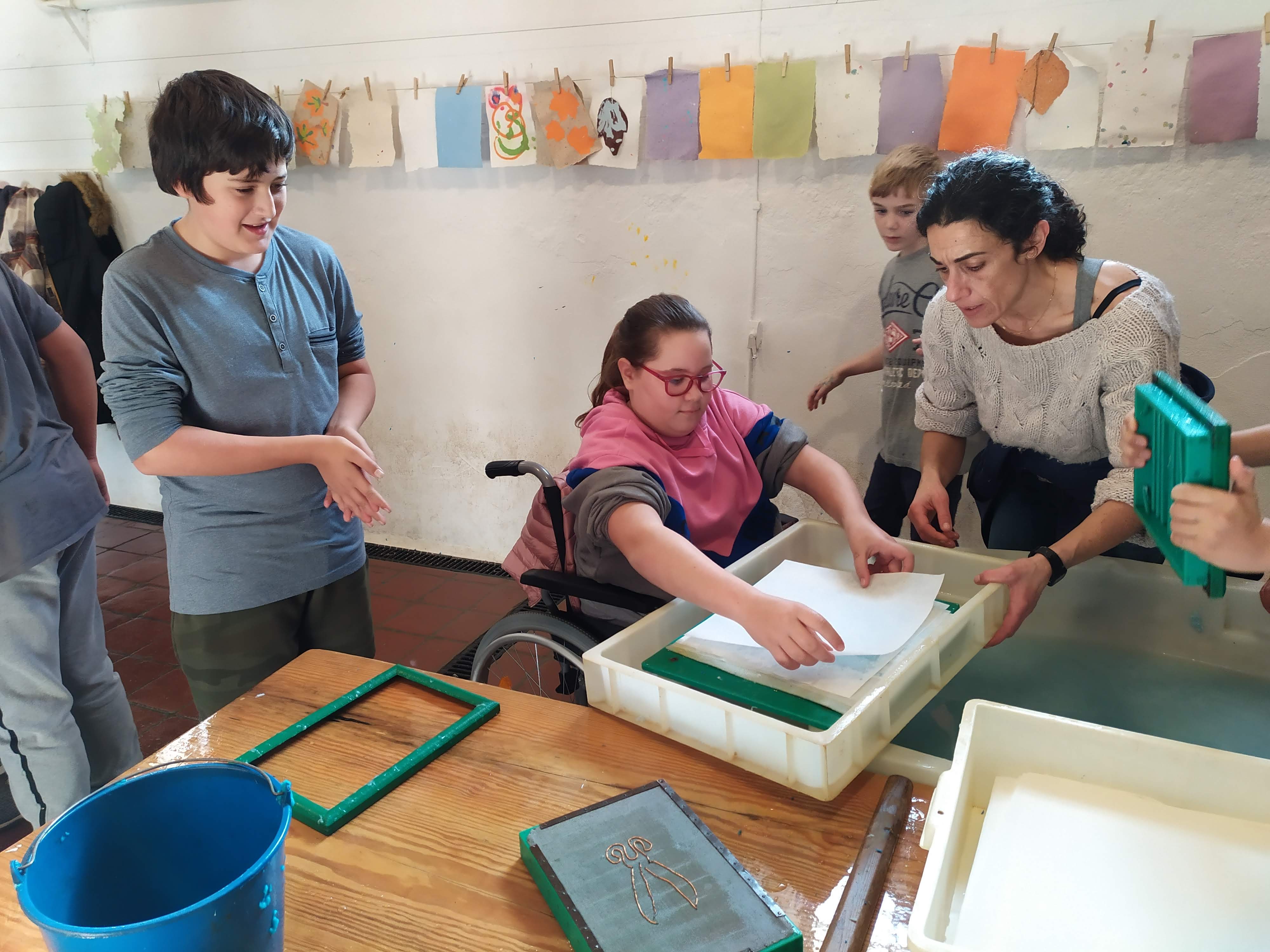 També vam experimenta-ho nosaltres! Vam poder fer el nostre propi paper reciclat que ens vam poder emportar.