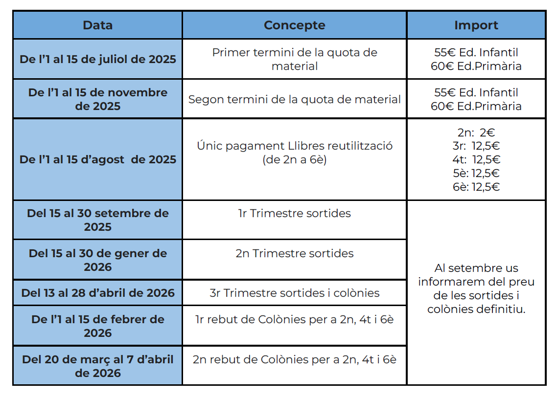 Dades d'interès curs 2025-2026