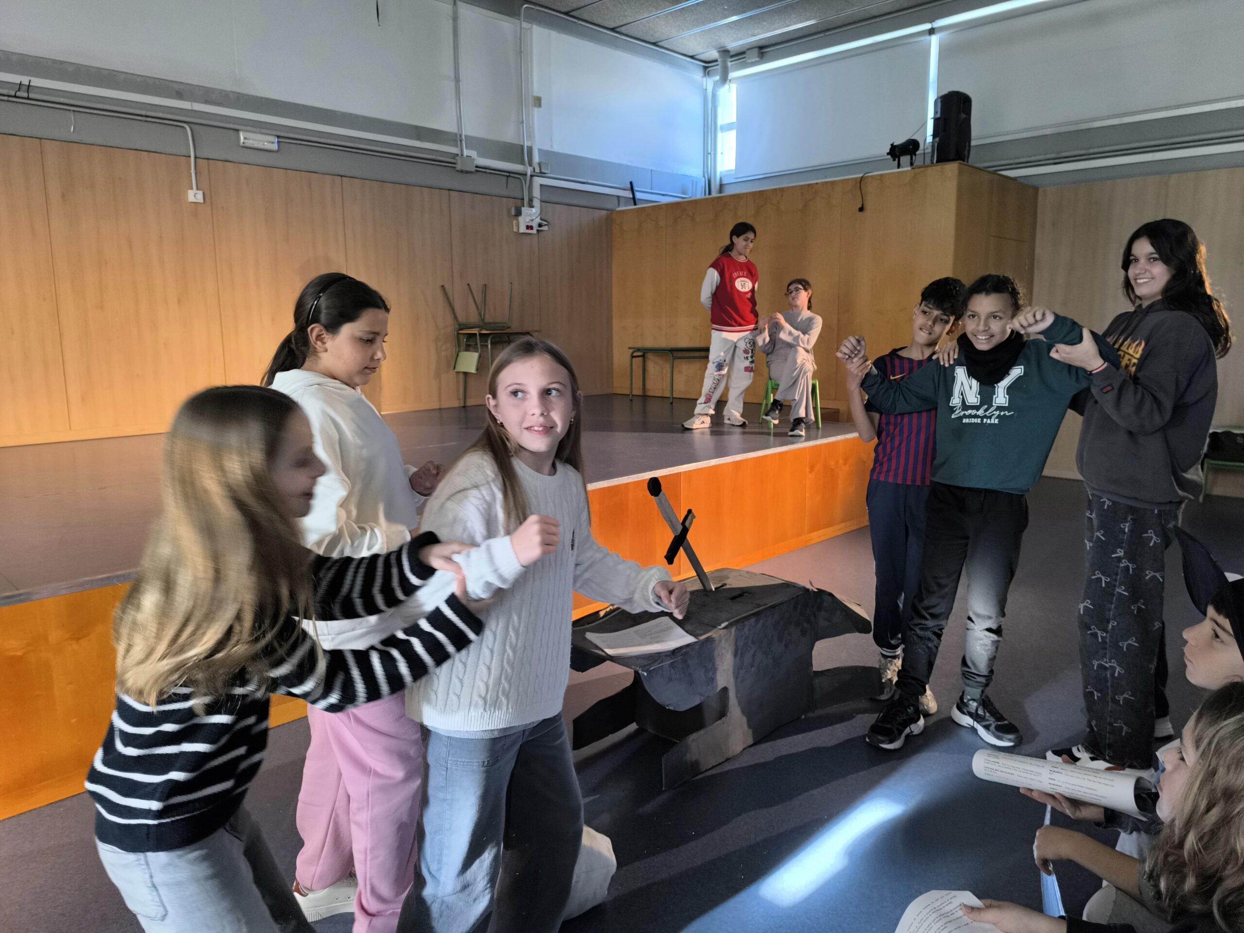 Escalfant motors per l’obra de teatre de “El Rei Artús” per part de l’alumnat del taller d’expressió oral de 6è. Estan molt motivats i amb moltes ganes de fer l’obra a la resta de companys i companyes per exposar tot el que han treballat aquest trimestre.