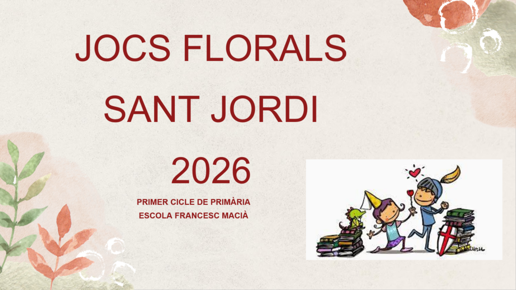 CI- Jocs Florals Sant Jordi 2026 Feu un comentari / Per admin / 23 d'abril de 2026 / Celebracions a l'escola Cicle Inicial Portada / 1r, 2n, Cicle Inicial, curs 25-26, expressió escrita, Jocs florals, Sant Jordi