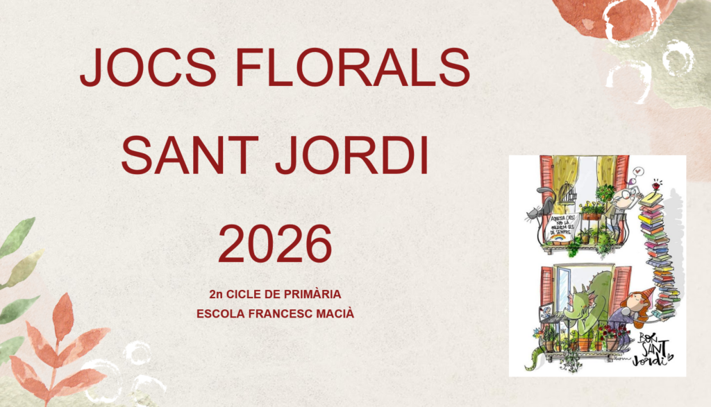 CM- Jocs Florals Sant Jordi 2026 Feu un comentari / Per admin / 23 d'abril de 2026 / Celebracions a l'escola Cicle Mitjà Portada / 3r, 4t, Cicle Mitja, curs 25-26, expressió escrita, Jocs florals, Sant Jordi