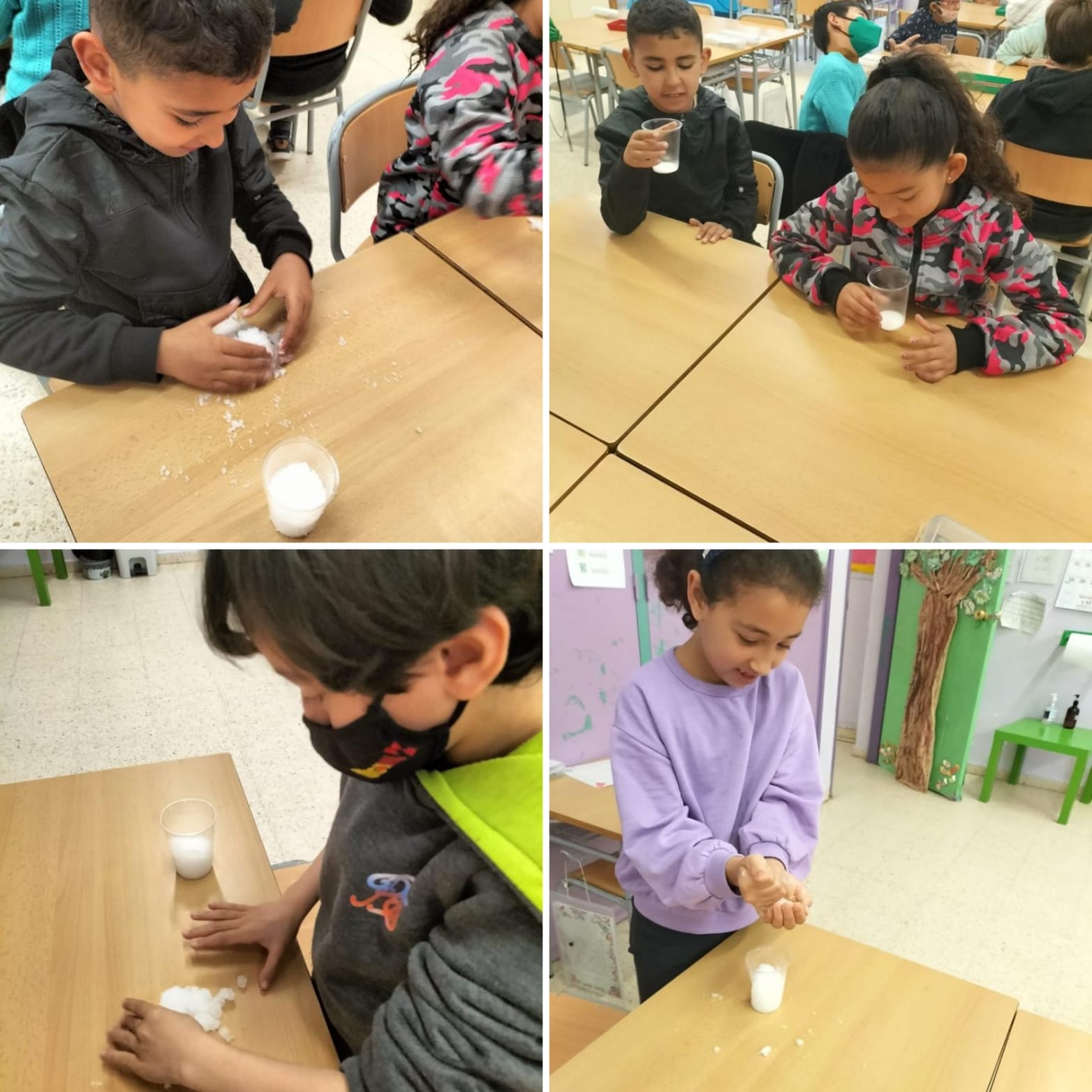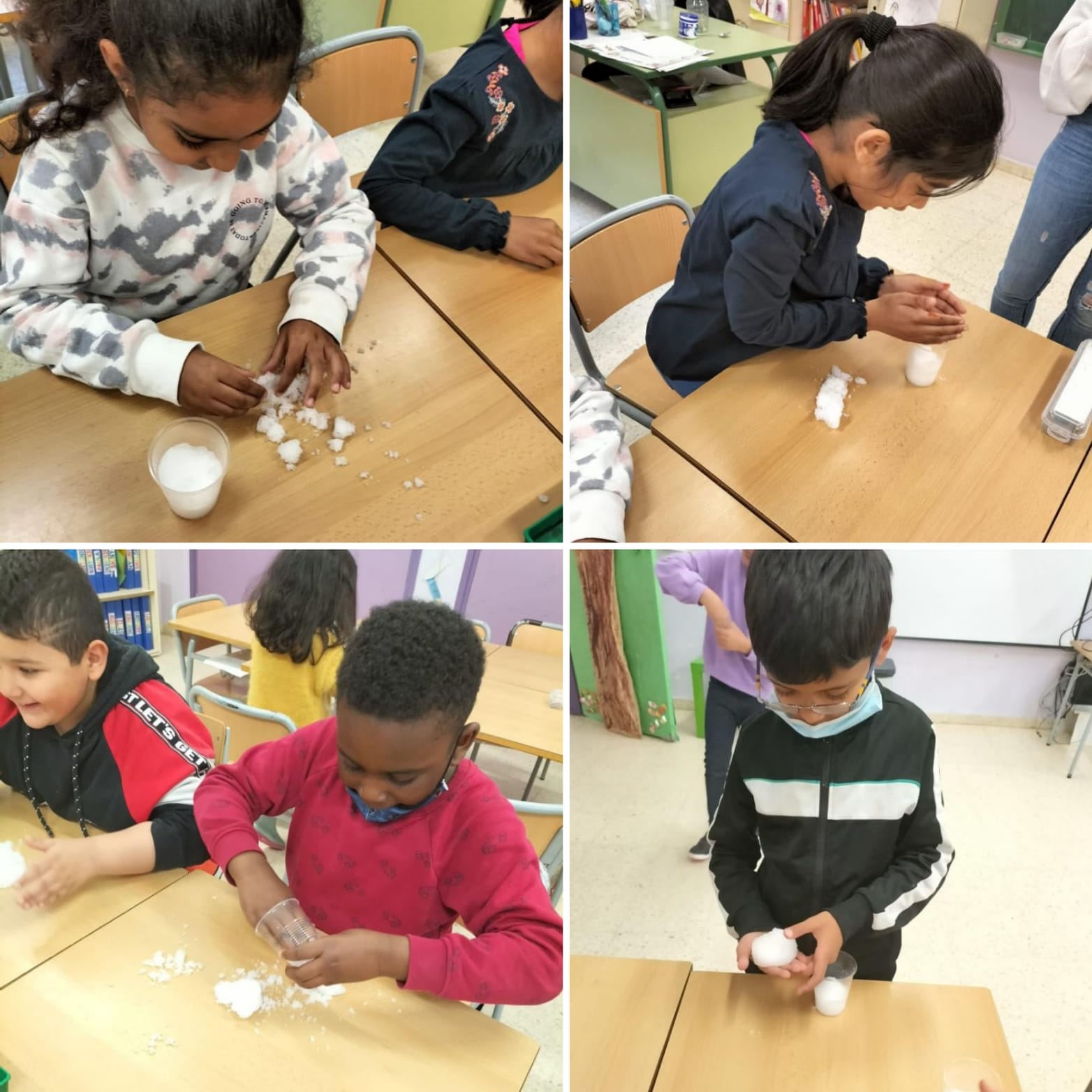 A través de la segona sessió, amb l’ajut d’una pols màgica, vam convertir l’aigua en neu i després vam poder fer unes curses utilitzant la força propulsora del vent, vam aprendre que hi ha altres maneres de moure els objectes.