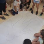 En primer lloc, a 1r, hem dibuixat la silueta d’un company