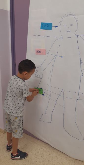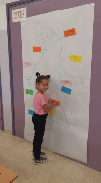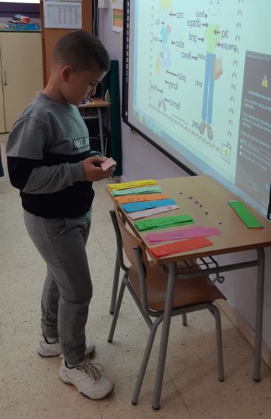 Per taules, hem anat sortint d’un en un; hem llegit la cartolina que hem escollit i la hem enganxat a la part del cos corresponent