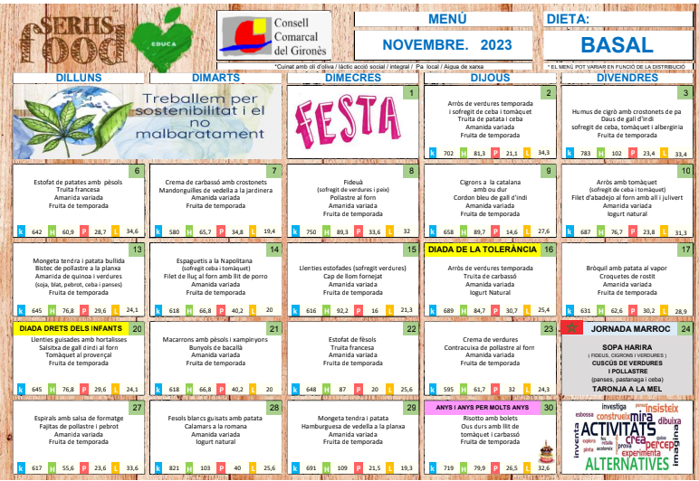 • Informe de valoració de la programació de menús