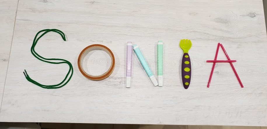 | LLENGUA | Aquesta setmana us proposem fer els vostres noms amb objectes que tingueu a casa: coberts, llapis, cordons, joguines… Us deixem la foto d’un exemple. Ens podeu enviar les vostres fotografies al whatsapp de l’escola o per correu. | ![]() |