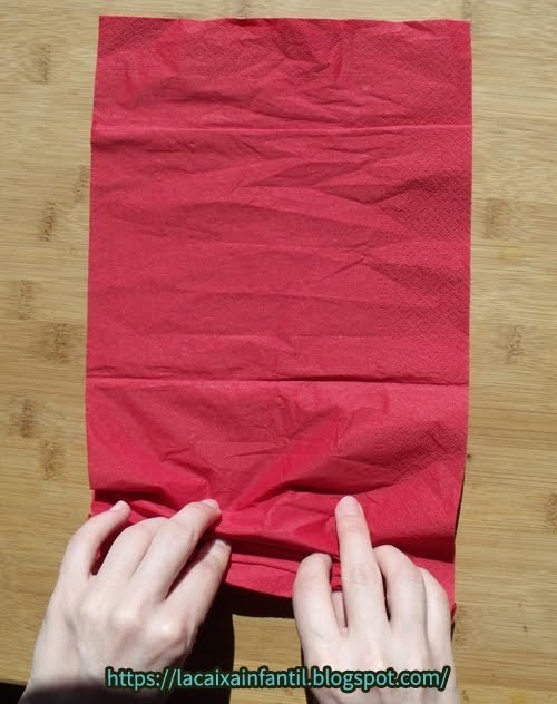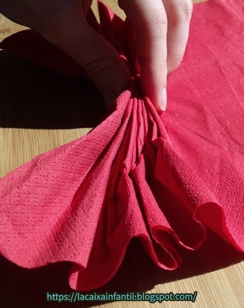 Desplegar el tovalló i anar arrugant, tot avançant els dits mentre mantenim el dit pol polze de topall al principifins que arribem al final.