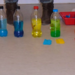 Experiment amb aigua i papers de colors Podem agafar ampolles d’aigua i papers de colors i podem observar que després de posar el paper de color, l’aigua s’ha anat tenyint