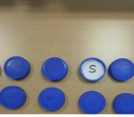 | Memory de lletres amb taps de plàstic confeccionat per vosaltre mateixos.