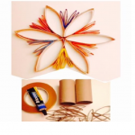 | Fes un mandala amb forma de flor amb rotlles de paper de wàter tallat a tires, semblant al de la foto. Necessitaràs tisores i cola.