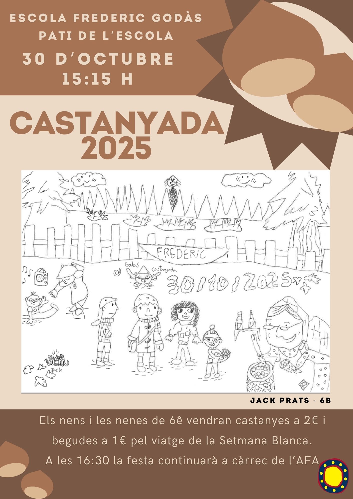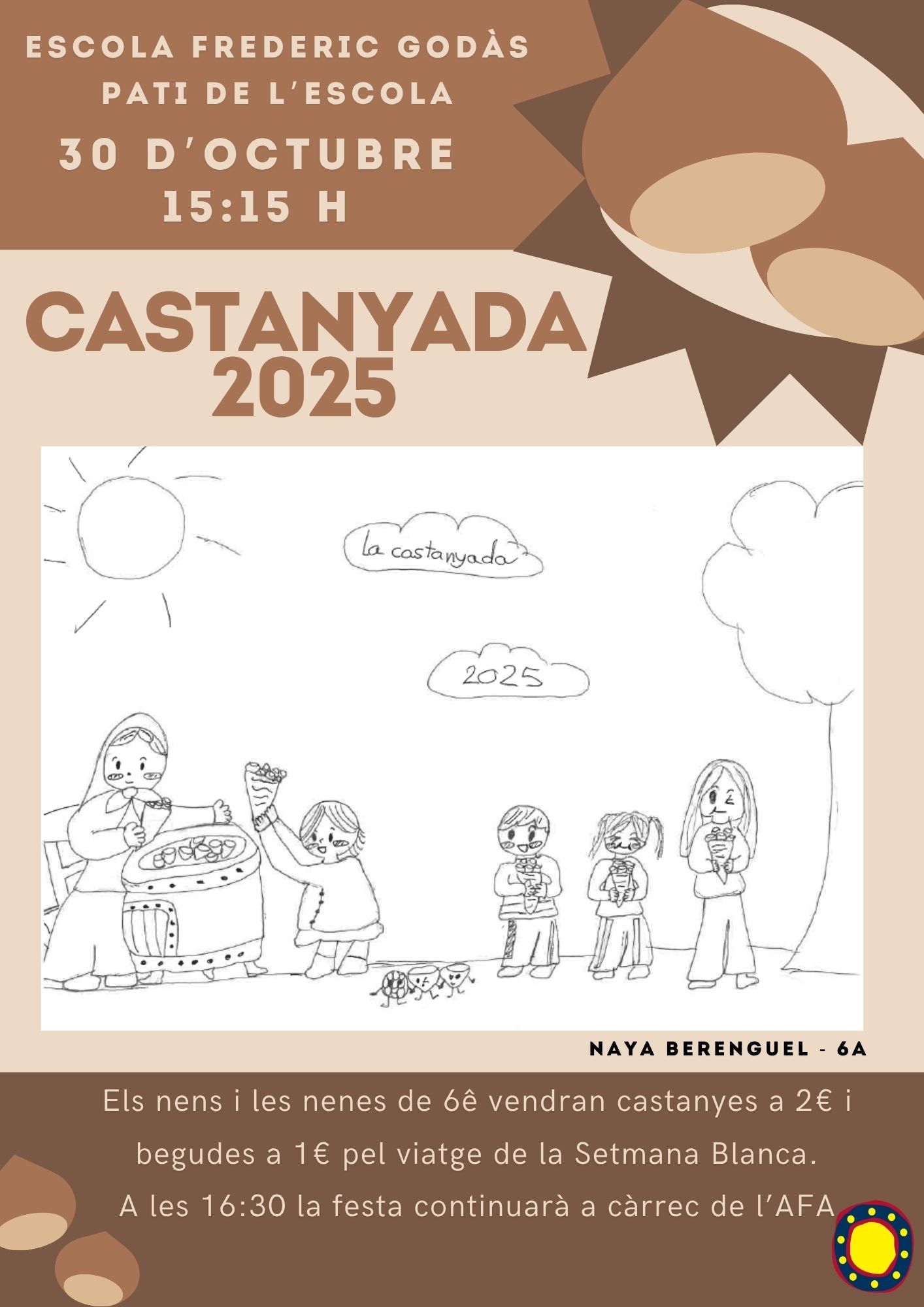 Recordem a les famílies de l’escola Frederic Godàs que el dijous 30 d’octubre se celebrarà la festa de la Castanyada 2025.