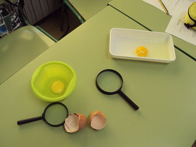 Incubation process: Amb els grups de Cicle Mitjà i Cicle Superior vam iniciar el procés d’incubació dels ous. Aquest treball el fem a l’àrea de medi en llengua anglesa. Experimenting with eggs: Experimentació per veure les parts de l’ou i si s’han fecundat.
