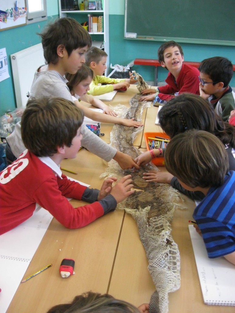 ELS NOIS I NOIES DE CICLE MITJÀ ENS HAN PORTAT UNA PELL DE SERP DE MAS BATLLORI I L’HEM TOCAT, MESURAT I DIBUIXAT. UNA PELL DE BOA CONSTRICTORA (BOA CONSTRICTOR)