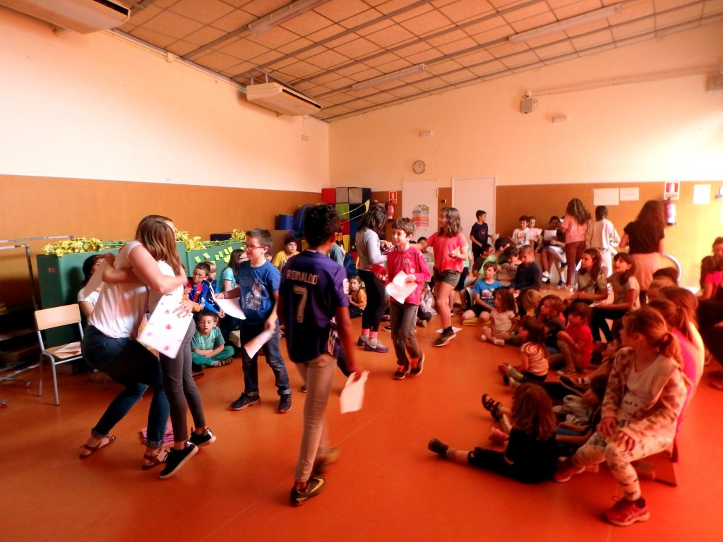 La nostra auxiliar de conversa torna cap a Colorado (EUA). Els nens i nenes de Cicle Superior li han fet un ball, una cançó i uns collages de fotos. Els alumnes de Cicle Mitjà li han preparat un concurs de preguntes i els altres li han fet molt dibuixos. La trobarem molt a faltar!