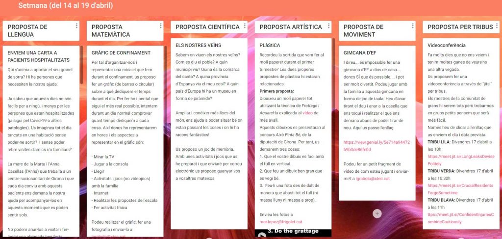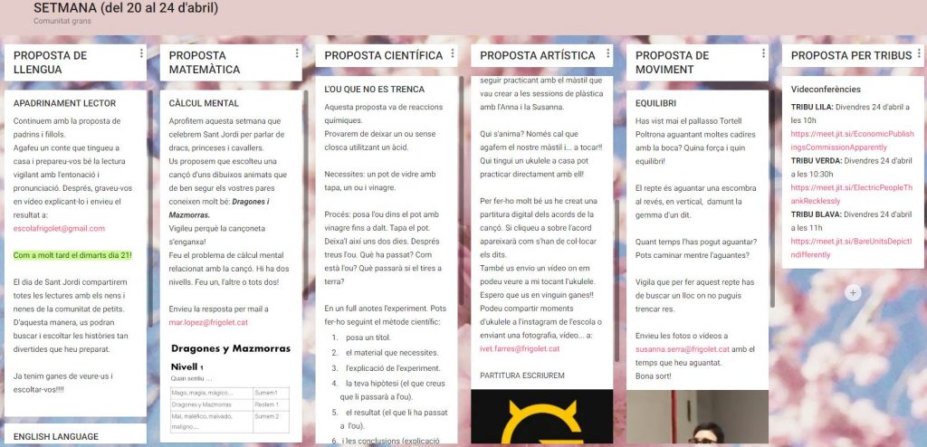 Comencem una nova setmana virtual i amb ella un nou pla de treball una mica especial. El dijous és SANT JORDI!!! Veureu que algunes propostes hi estan molt relacionades. Esperem que us agradin. També, ja us podeu anotar a l’agenda la segona trobada virtual per tribus. Es faran divendres a la mateixa hora que la