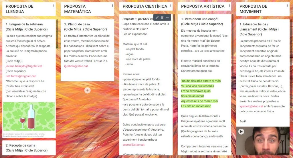 Hola família Frigolaire! Comencem amb el primer repte virtual. Els mestres ens hem animat a versionar les primeres estrofes de la cançó “Les nits no moren mai” del Doctor Prats, per posar una mica de música en aquests dies que estan essent força complicats per a tothom. Ara us toca a vosaltres! Us animem a