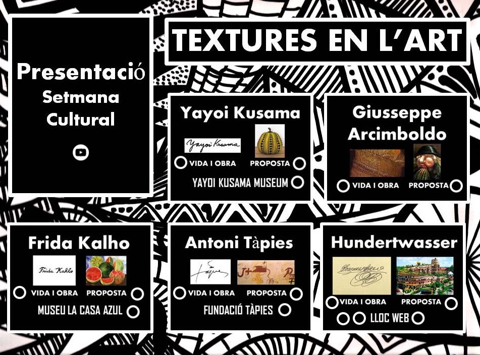 Ja tenim aquí la Setmana Cultural 2020! Esperem que la gaudiu moltíssim! Us adjuntem l’enllaç del programa i les propostes de la Setmana Cultural 2020. Recomanem fer una proposta cada dia i que mica en mica ens aneu enviant totes les vostres creacions. Teniu temps fins el dimarts 26 de maig per fer-ho arribar! El divendres dia 29 de maig farem l’exposició final amb diferents muntatges de tot el que ens heu fet arribar.
