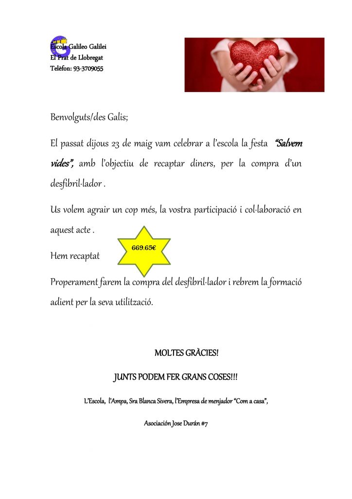 MOLTES GRÀCIES FAMÍLIES!!!! ACTE SOLIDARI “SALVEM VIDES”