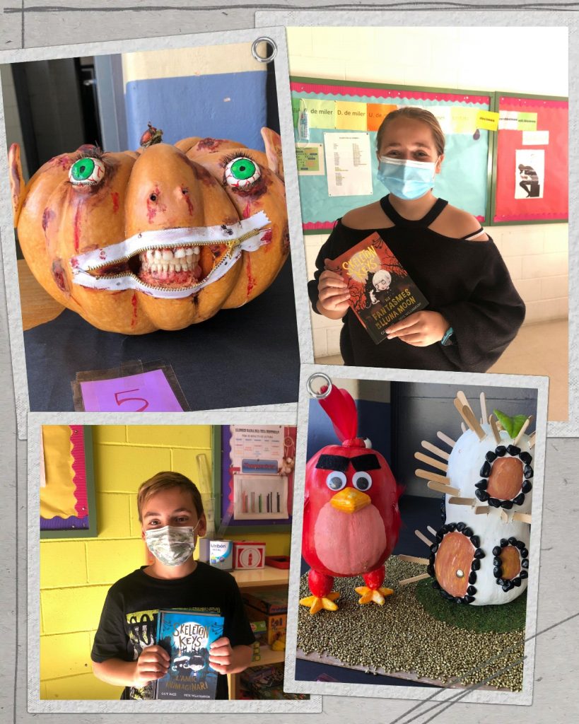 Last week , we celebrated Halloween. Some children carved spooky pumpkins for the school contest. The winners were Lucia and Joan. Congratulations!