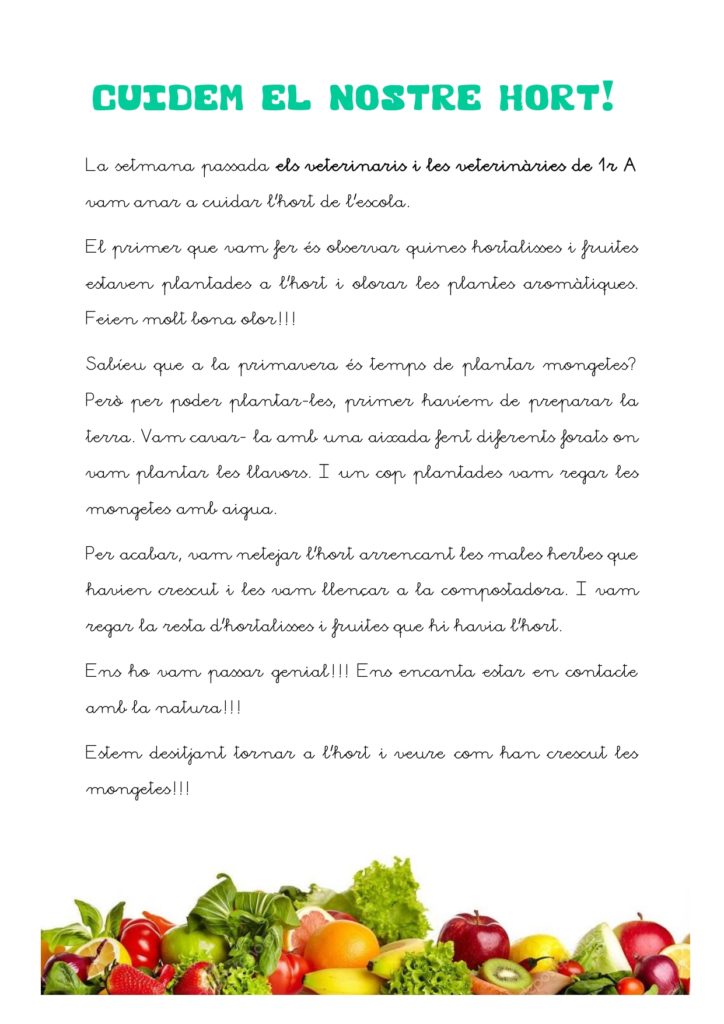 CUIDEM EL NOSTRE HORT (CICLE INICIAL 1r Primària) Llegeix més »