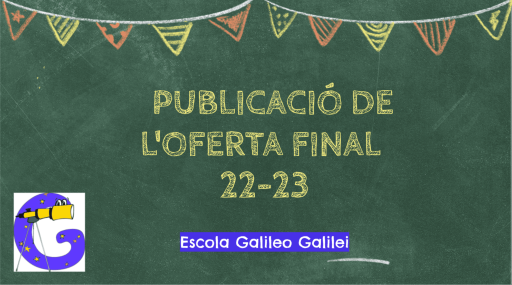 Hola famílies, Sembla mentida que ja hagi arribat l’últim dia de curs! Com ja sabeu, aquests últims anys, el Galileo no ha pogut mostrar-se tal com és, ple de festes, rialles, diversió, compartint moments especials entre tota la comunitat educativa, un Galileo Especial. Però aquest final de curs ja hem començat, mica en mica, a […]