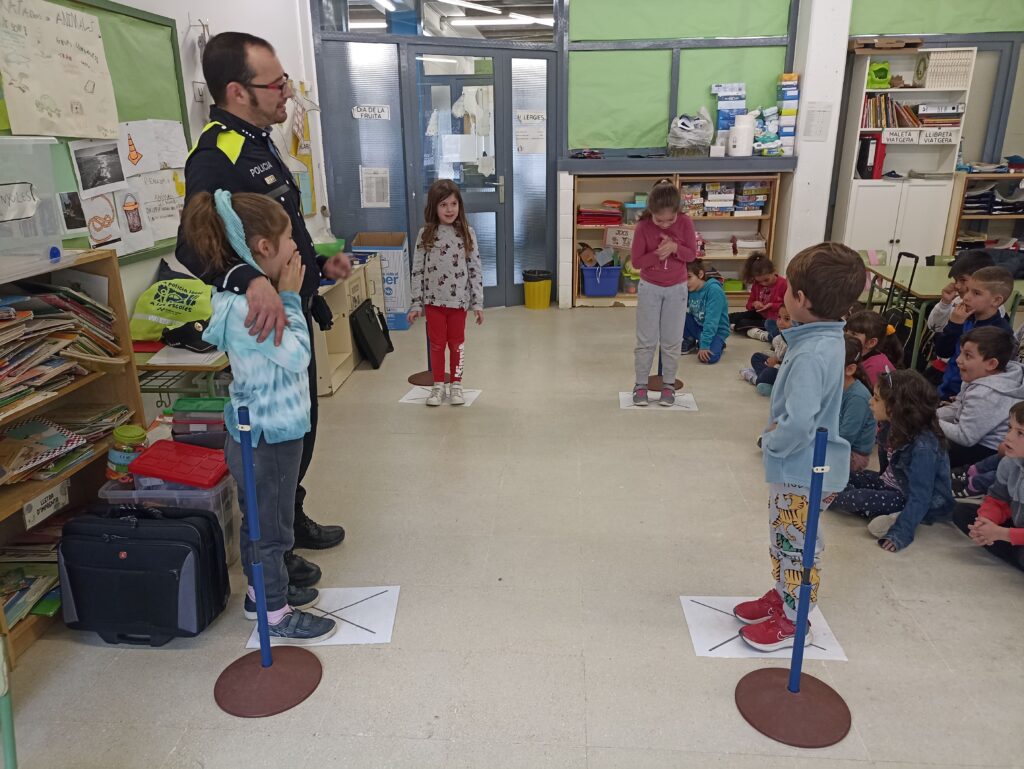 Dilluns, els nens i nenes de primer vam rebre una visita ben especial. Va venir el Toni, Policia Local, a explicar-nos coses tan importants com que hem de passar pel pas de vianants sempre de la mà de l’adult i que hem de conèixer els diferents senyals de trànsit, per poder caminar pel carrer sense