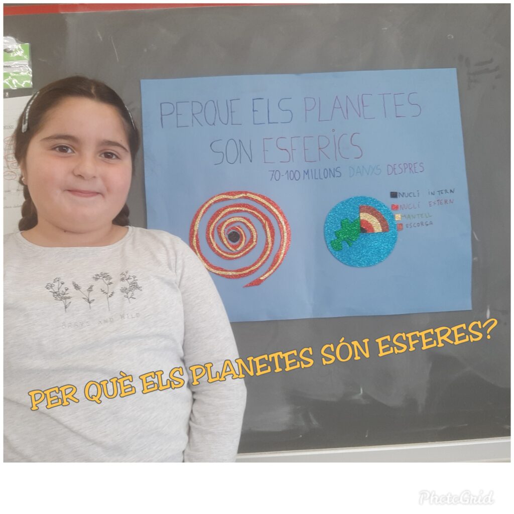 PER QUÈ ELS PLANETES SÓN ESFERES? L’Olaya ens ha explicat molt bé el motiu! Els planetes són rodons per la gravetat. Un cos celeste crea un camp gravitatori al seu voltant que fa que tota la massa d’aquest cos es concentri en el seu centre i atregui cap a ell tota la matèria. També ens
