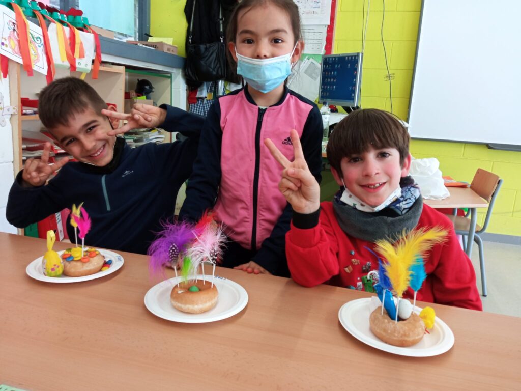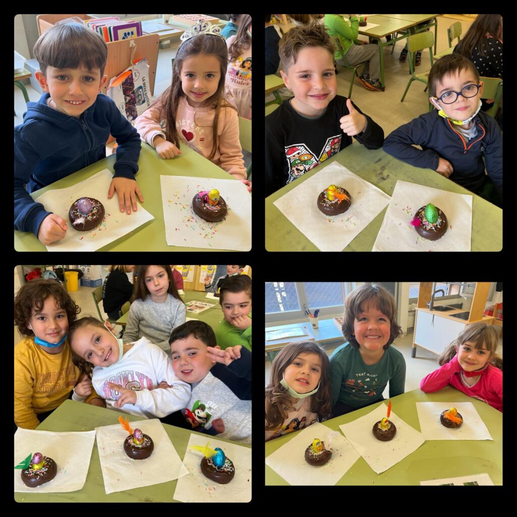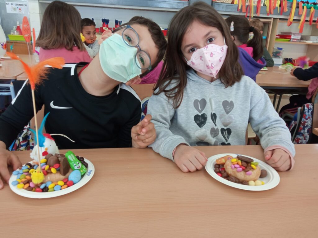 Els nens i nenes de primer vam fer unes mones ben especials, dignes del millor cuiner de Masterchef… Ous de xocolata per aquí, plomes per allà, Lacasitos per decorar… Aquí podeu veure les nostres creacions, que van ser el nostre esmorzar de l’últim dia del trimestre.