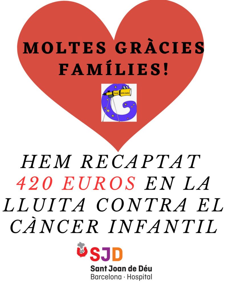 Estimats/des Galis, Només tenim paraules d’agraïment per la vostra col.laboració en la lluita contra el càncer infantil un any més. Entre tots/tes, hem aconseguit recaptat 420 euros a la xocolatada solidària del passat 16 de febrer, que aniran destinats integrament a l’hospital Sant Joan de Déu, per la investigació contra el càncer infantil. Com ja sabeu, l’Hospital […]