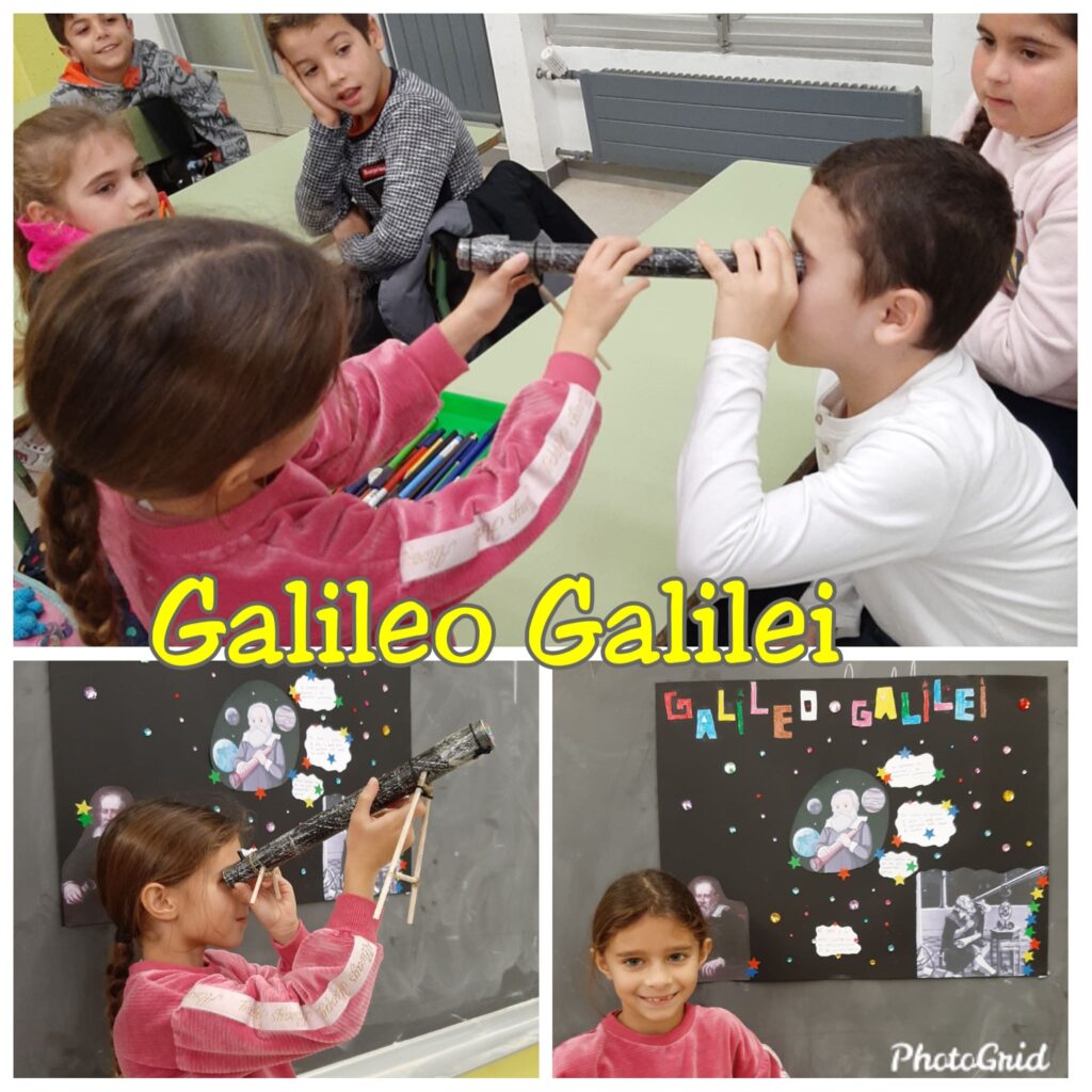 L’Ada ens ha explicat qui va ser Galileo Galilei. Estàvem súper atents perquè, a més, és el científic que dóna nom a la nostra escola. Galileo va néixer a Pisa, Italia, l’any 1564. Va ser un gran físic, matemàtic, astrònom i filòsof. I va tenir un paper molt important, ja que va millorar el telescopi
