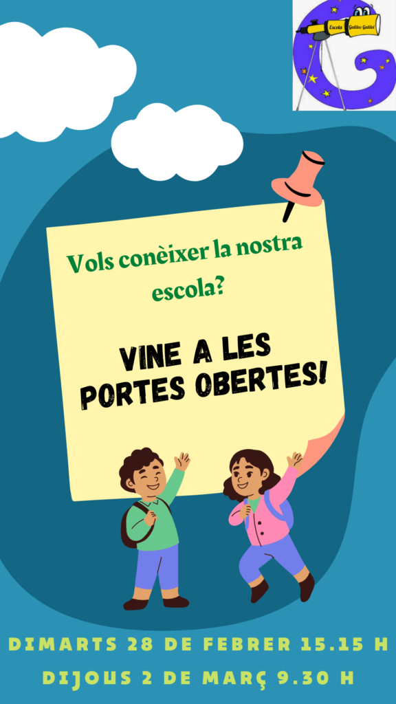 Estimades famílies, Voleu conèixer la nostra escola, els nostres projectes o el funcionament general del centre? Us convidem a la jornada de portes obertes que farem el dimarts 28 de febrer a les 15.15h i el dijous 2 de març a les 9.30 h. Inscriviu-vos a l’enllaç https://docs.google.com/forms/d/e/1FAIpQLSdyUIJFvjbe6ZQN3zeB02DBTzdLAJ2lnPy8d2M-FLvrHdB0TA/viewform?usp=sharing Durant la visita farem un recorregut per