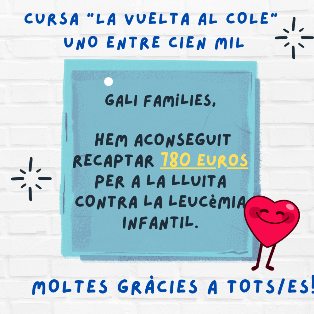 Divendres va ser un dia molt especial al Galileo, vam poder celebrar la cursa “Uno entre cien mil”!!! Aquesta no és una cursa qualsevol, és una cursa solidària per recaptar diners per a la lluita contra la leucèmia infantil. Com cada any tothom al Galileo vol aportar el seu granet de sorra. Durant la setmana