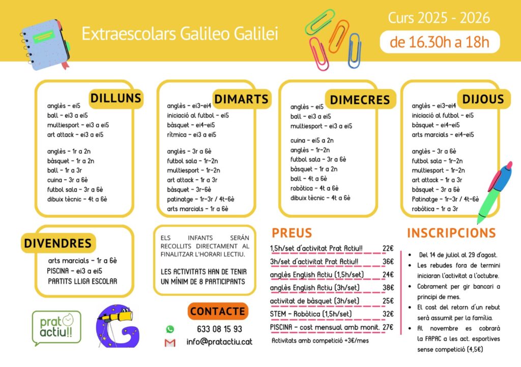 Us informem de les activitats extraescolars del curs 2025/2026.