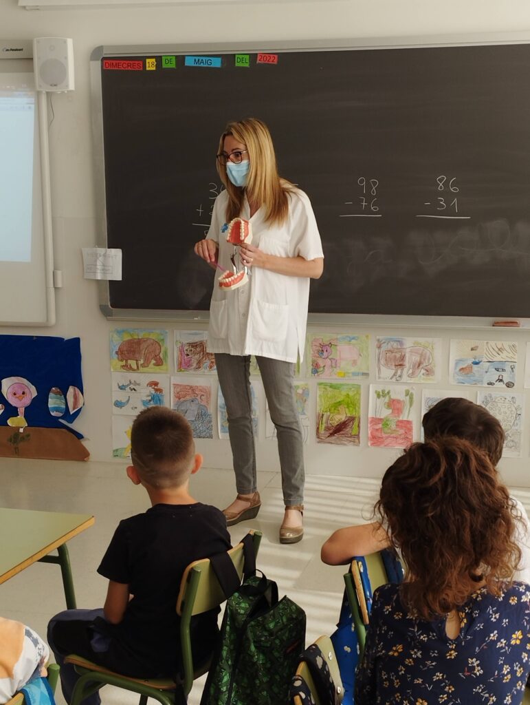 Dimecres passat ens van fer una xerrada sobre higiene dental. Primer vam visionar un vídeo on vam veure com atacaven les càries a les nostres dents quan menjàvem sucre. Després, la Sònia (higienista dental) ens va explicar quin menjar i quines begudes havíem d’evitar perquè portaven molt sucre i ens feien malbé les dents (sucs envasats, begudes ensucrades, xocolata, brioxeria industrial…). Finalment ens va ensenyar com havíem de raspallar-nos les dents i ens va recomanar que féssim servir el rellotge de sorra per calcular el temps que havíem d’estar raspallant-nos-les.