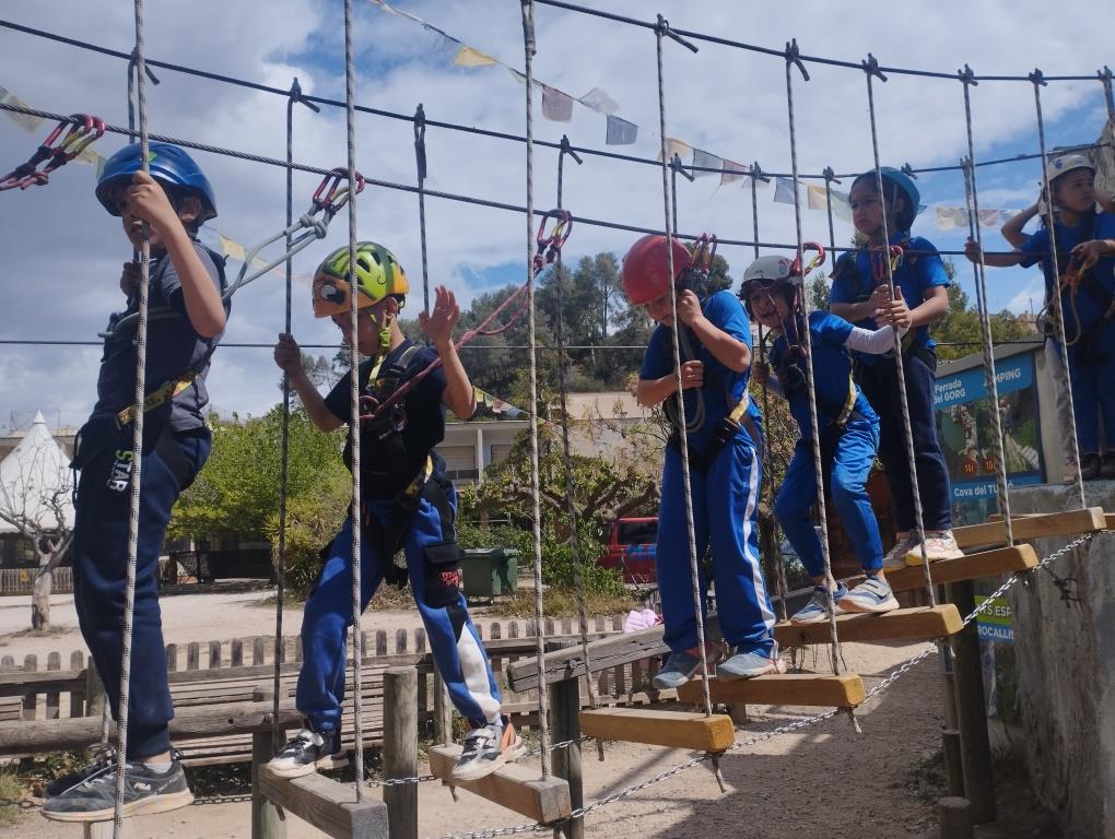 Avui, els i les alumnes de 2n de Primària hem anat al parc “Les Déus Aventura” a Sant Quintí de Mediona on hem realitzat diverses activitats d’aventura. Primer de tot, hem fet un joc d’orientació, després hem fet el circuit de “El petit aventurer”, on ens hem hagut de posar un arnés i un casc per no fer-nos mal i, per últim, ens hem llençat per tres tirolines diferents!! Això ha estat el que ens ha agradat més!! Ha estat una sortida genial i l’hem gaudit al màxim!!